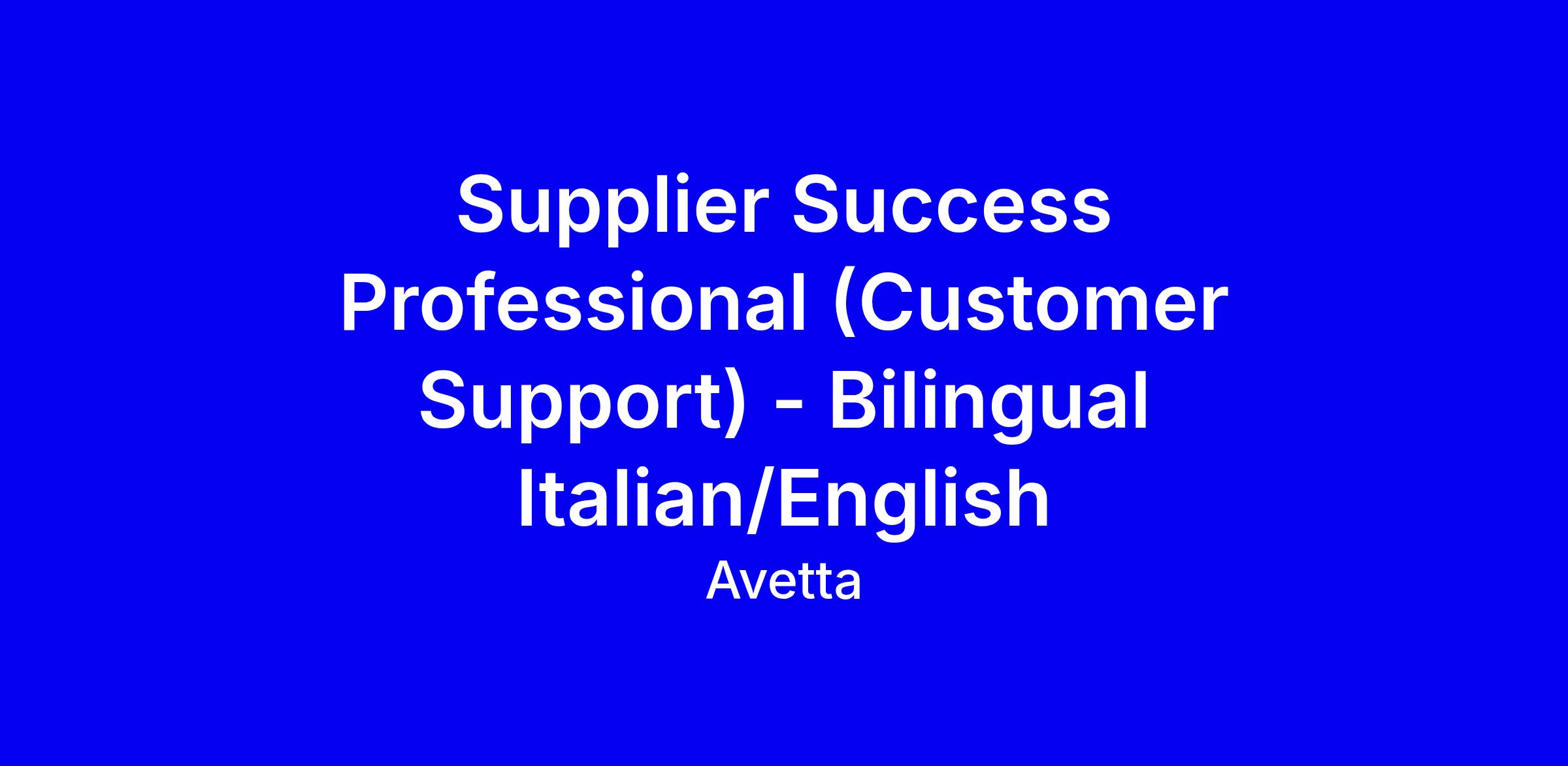 The Supplier Success Professional will provide front-line support to suppliers by resolving inquiries, verifying compliance documentation, and ensuring a seamless onboarding and service experience across multiple communication channels. This position requires being fully fluent in Italian and English.