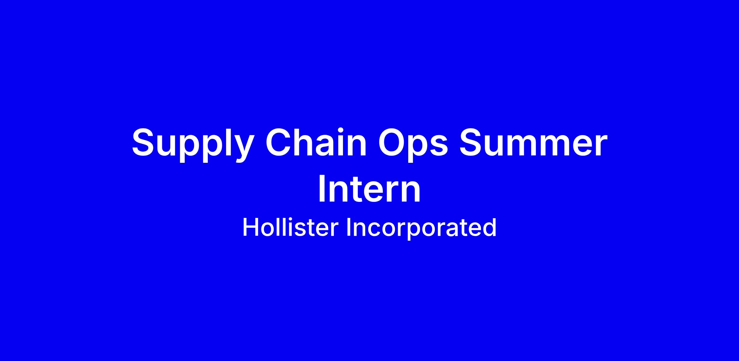 The goal of Hollister’s internship Program is to identify potential students with diverse skills and expose them to Supply Chain Management and the healthcare industry. Upon completion of the internship the student will be considered for possible future employment opportunities within our Supply Chain network.