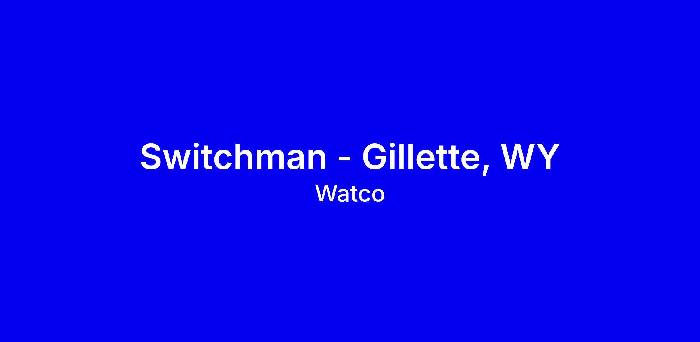Watco’s Switchman in Gillette, WY is a full-time, onsite role that keeps trains moving through yard and switching operations. Starting pay is $20 per hour with paid on-the-job training and access to Watco University for leadership development. You will control and coordinate railcar movements, read switching orders, relay information to engineers and dispatchers, throw track switches, couple and uncouple cars, apply brakes, and maintain records, all while prioritizing safety and reliable attendance. Requirements: HS diploma or GED, ability to pass required tests and certifications, English literacy and basic math. To apply, emphasize dependable attendance, safety mindset, teamwork, clear communication, and any railroad or heavy-labor experience.