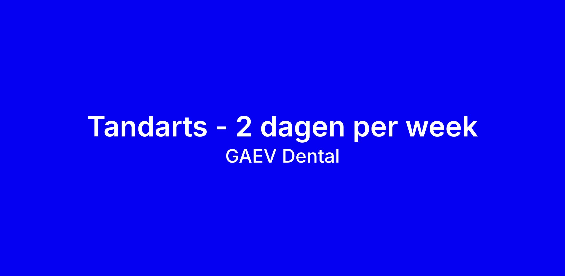 GAEV Dental zoekt voor Tandheelkundig Centrum Udenhout een enthousiaste algemeen tandarts die samenwerking en kwaliteit hoog in het vaandel heeft staan. De praktijk is modern en collegiaal met 10 behandelkamers, een eigen laboratorium en geavanceerde apparatuur zoals CBCT, T-scan en Trios, en biedt volop ruimte voor ontwikkeling binnen een team van circa 40 medewerkers. Je werkt zelfstandig maar ziet zorg als een teamsport en communiceert helder. Beschikbaarheid minimaal 2 dagen per week op dinsdagmiddag en woensdag; er zijn opties voor ZZP of loondienst, en meer dagen of andere praktijken zijn bespreekbaar. Solliciteer via de sollicitatieknop met je CV; je ontvangt binnen twee weken een reactie. Vragen? Suzanne van Es 06-15634666. Acquisitie naar aanleiding van deze advertentie wordt niet op prijs gesteld.