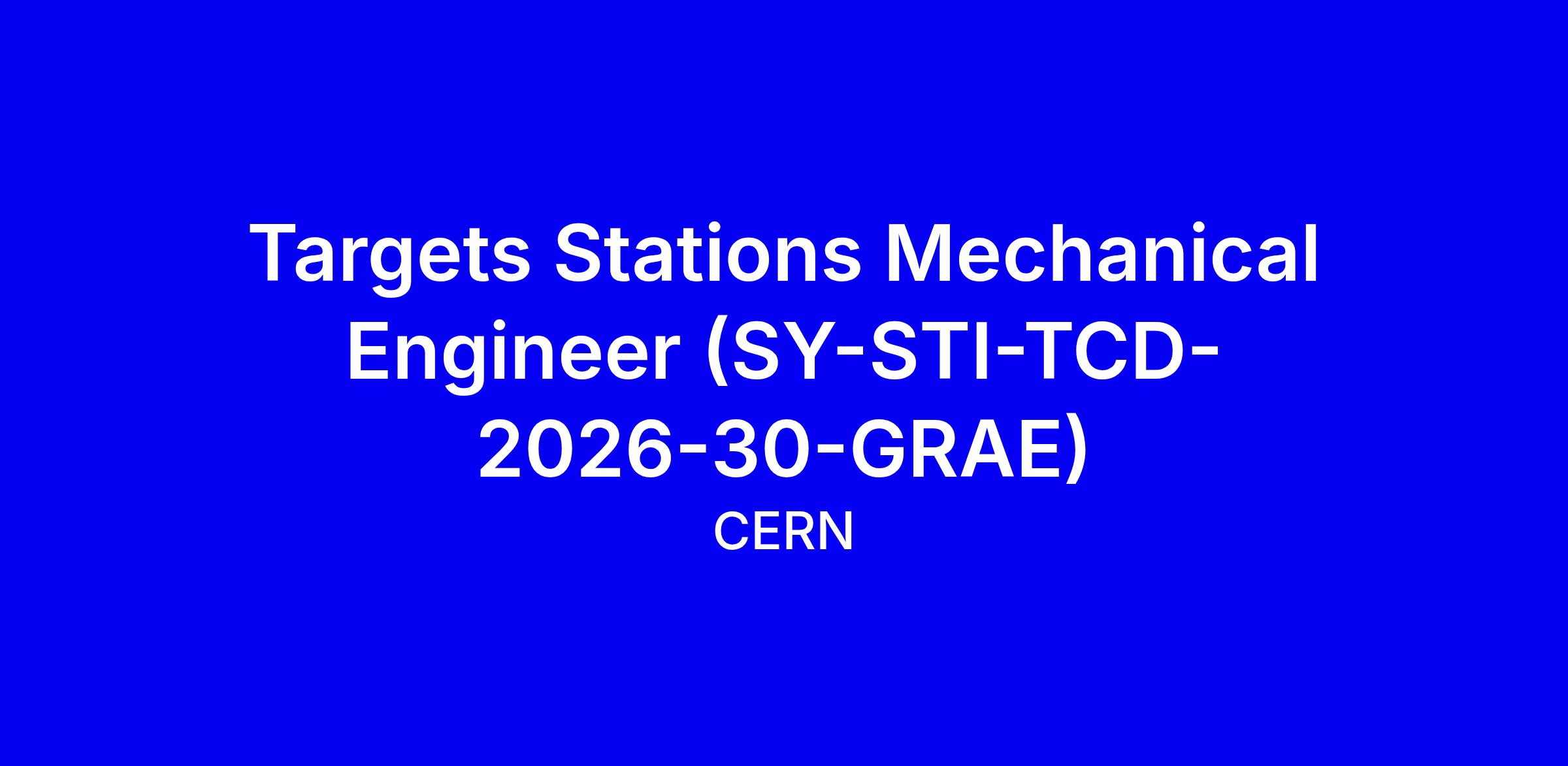 CERN is hiring a Targets Stations Mechanical Engineer (SY-STI-TCD-2026-30-GRAE) to design, build, operate and maintain beam intercepting devices across three target stations and two collimators, including commissioning, production coordination, procurement and contractor oversight. The ideal candidate has a Mechanical Engineering degree with early manufacturing and design experience, strong CAD skills (3D and 2D), and hands on experience with precision mechanics, plus clear communication to thrive in a multidisciplinary team. English or French is required with the other language to be learned. This fully onsite role involves work in Radiation Areas and underground interventions and requires a valid driving licence. Apply by 05.03.2026, emphasize two years or less post graduation, a Bachelor's or Master’s degree, and no CERN fellowship; start date is 01-July-2026. Highlight procurement, specifications, and teamwork in your application and show willingness to relocate if needed.