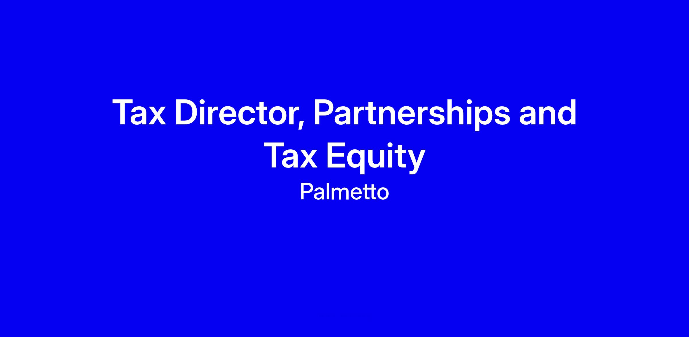 Palmetto is looking for a Tax Director, Partnerships and Tax Equity in Charlotte to own all partnership and tax equity functions, reporting to the Chief Accounting Officer. You'll oversee federal and state partnership returns, build a robust cash tax forecast, lead tax planning, serve as the primary liaison with external advisors and authorities, and manage tax credit registrations and HLVB calculations and related tax equity work papers. The role requires strong internal controls, vigilance on tax law changes, and cross functional collaboration with corporate tax and business teams to drive compliance and value. Qualifications include a CPA with 10+ years tax experience, partnership tax expertise, Big 4 preferred, plus renewables ITC or tax equity experience; travel, onsite in Charlotte. How to apply: tailor your resume to emphasize partnership tax, tax equity, HLVB and ITC experience, quantify impact, show leadership and collaboration, align with Palmetto’s mission to accelerate clean energy, and be ready for a background check.