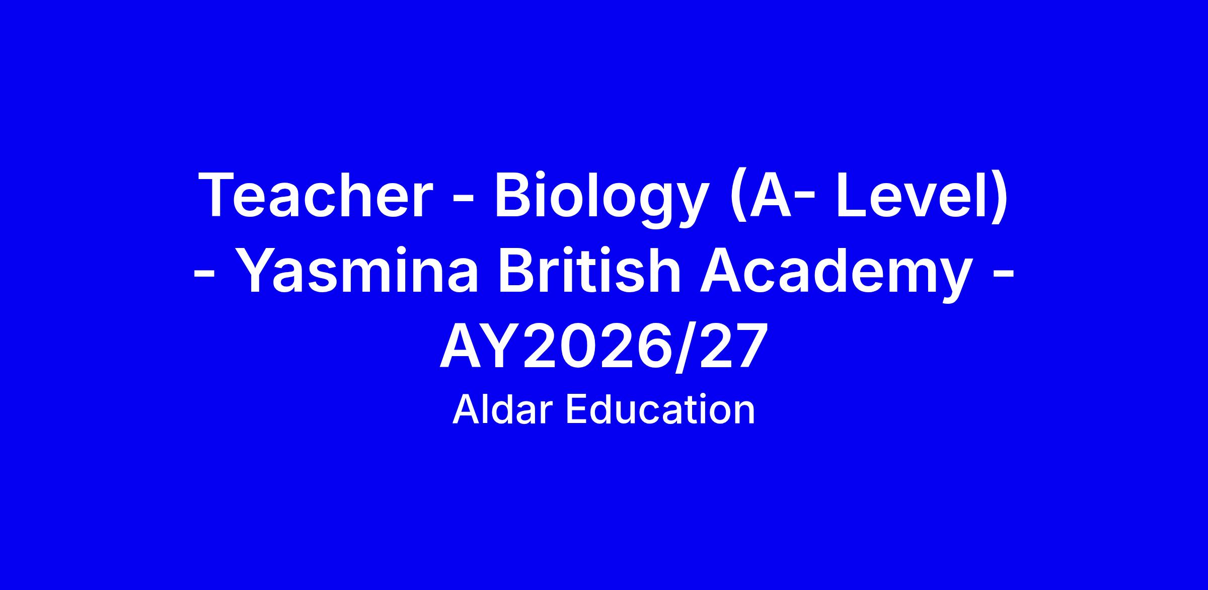 Aldar Education are currently seeking an outstanding Teacher of Biology (A - Level) for Yasmina British Academy in Abu Dhabi commencing next academic year 2026-2027.