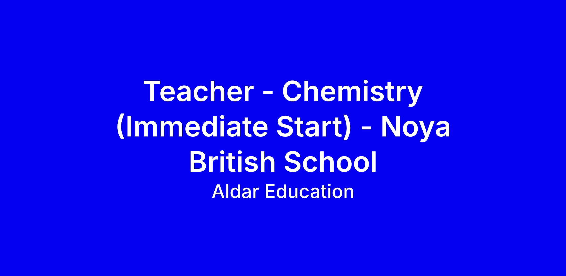 Aldar Education are currently seeking an outstanding Teacher - Chemistry (Immediate Start) for Noya British School in Abu Dhabi.