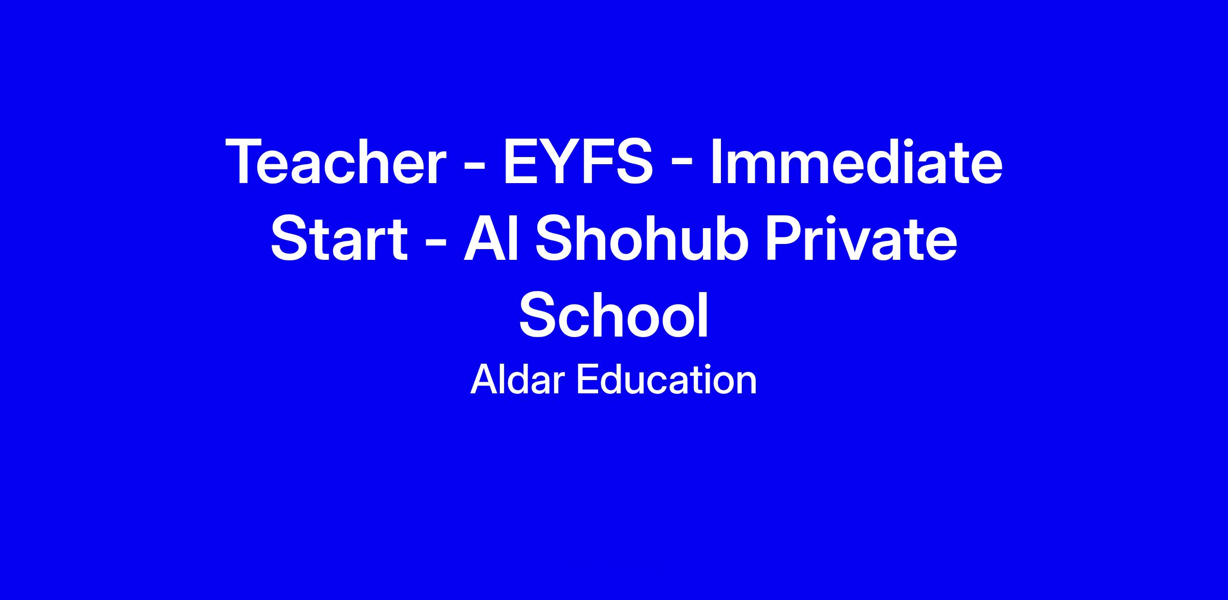 Aldar Education are currently seeking a Teacher - EYFS (Immediate Start) for Al Shohub Private School to support our growing family of owned and operated schools in the UAE.