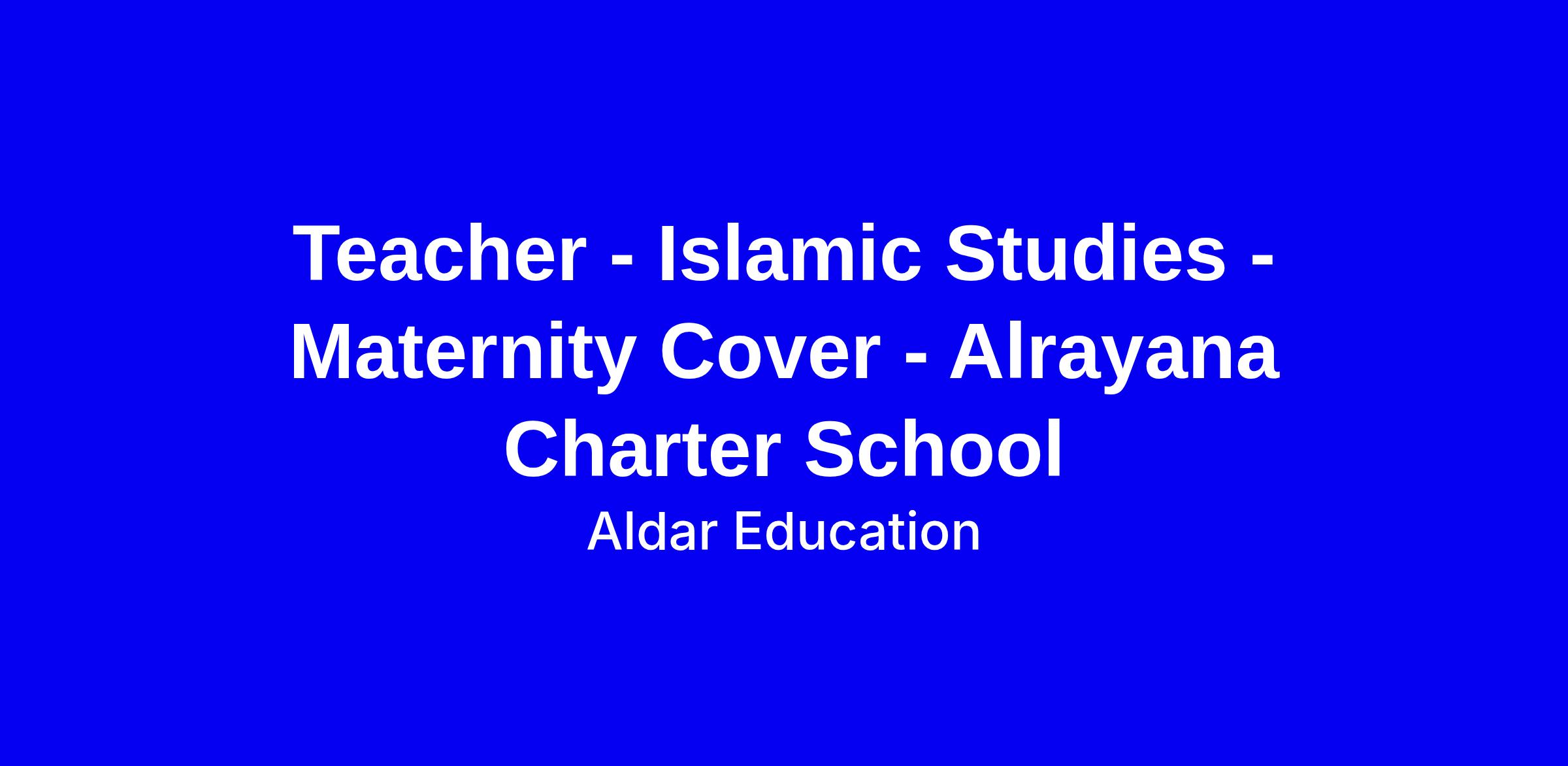 Aldar Education are currently seeking an outstanding Maternity Cover Teacher - Islamic Studies for Al Rayana Charter School in Abu Dhabi for an immediate start.