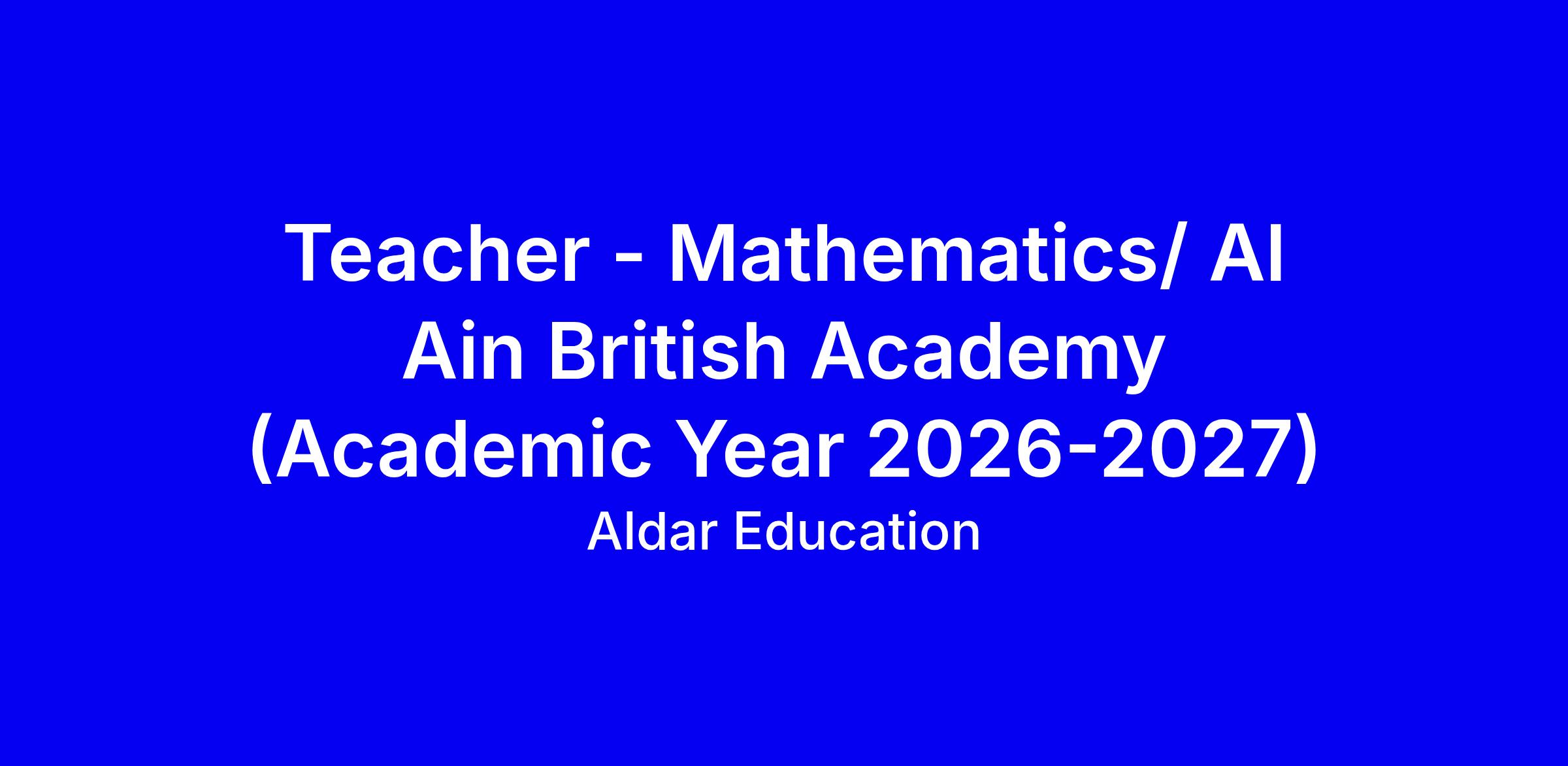 Aldar Academies are currently seeking an outstanding Teacher of Mathematics for Al Ain British Academy, commencing August 2026.