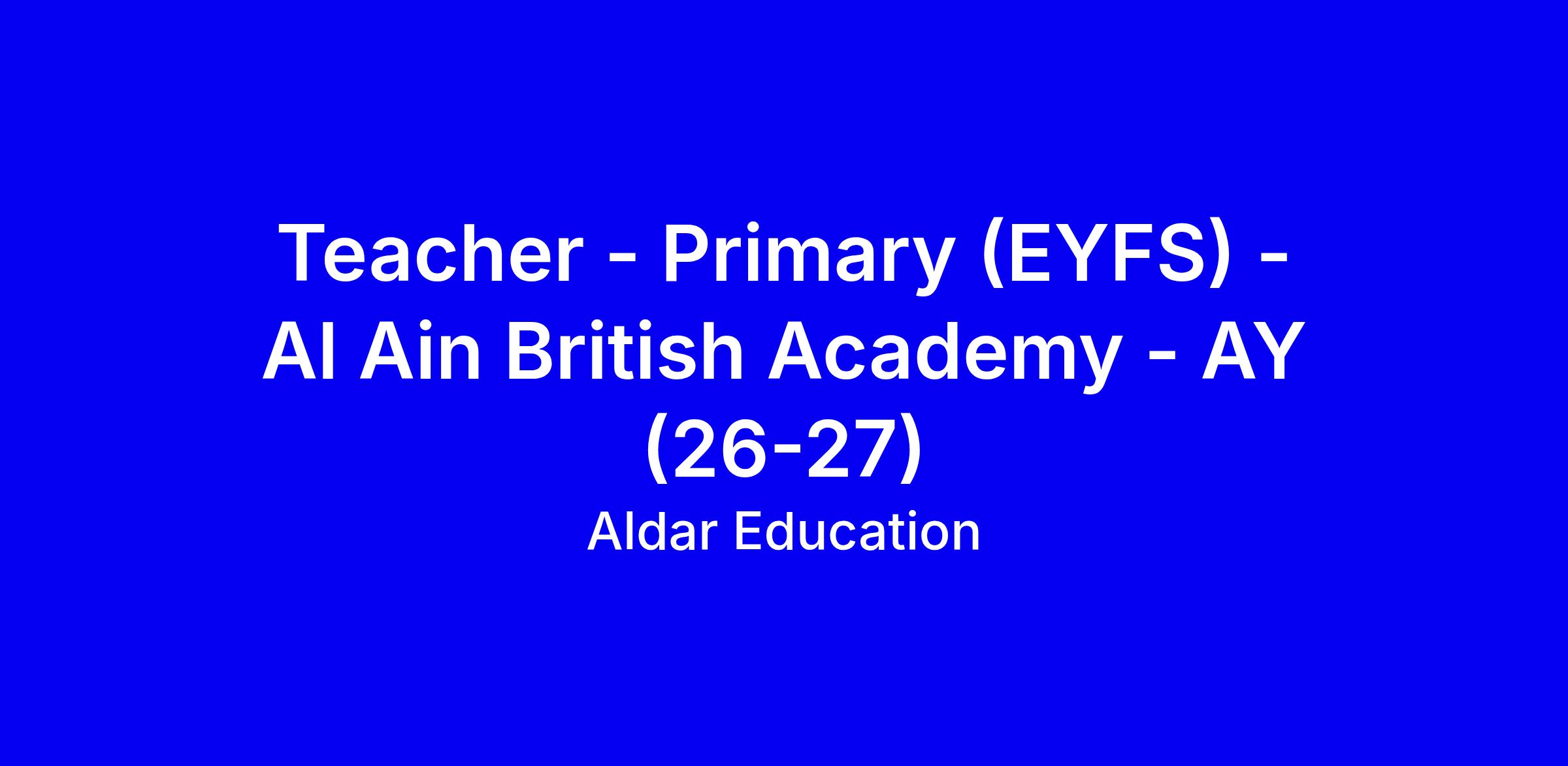 Aldar Academies are currently seeking an outstanding Teacher of Primary (EYFS) for Al Ain British Academy, commencing August 2026.