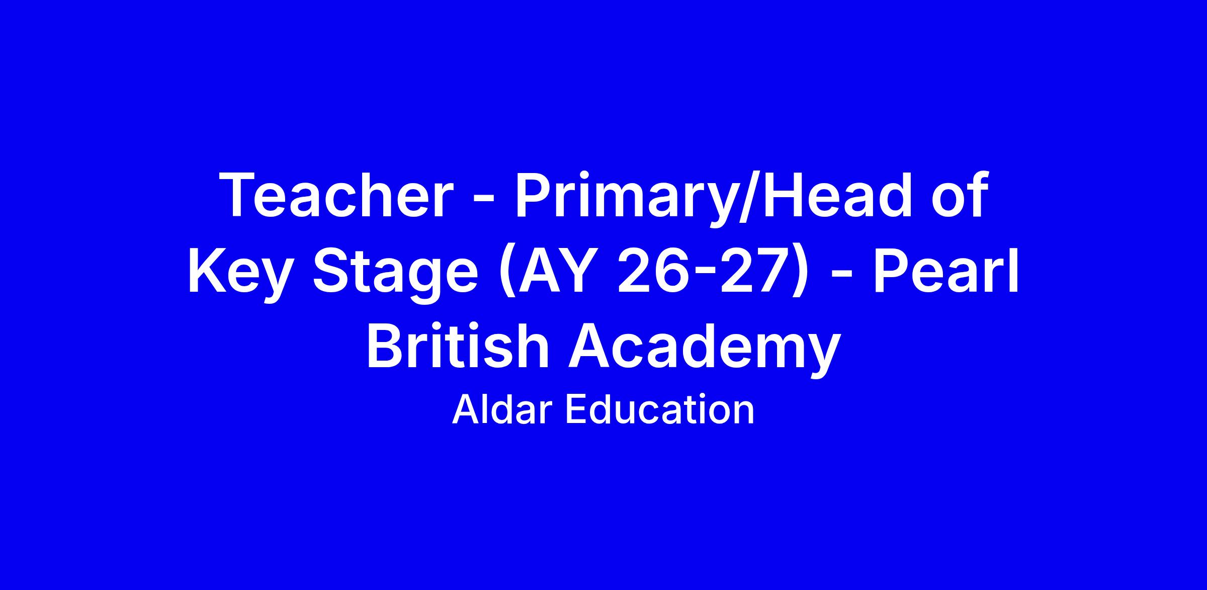 Aldar Academies are currently seeking an outstanding Primary Teacher/Head of Key Stage for the Pearl British Academy, commencing August 2026.