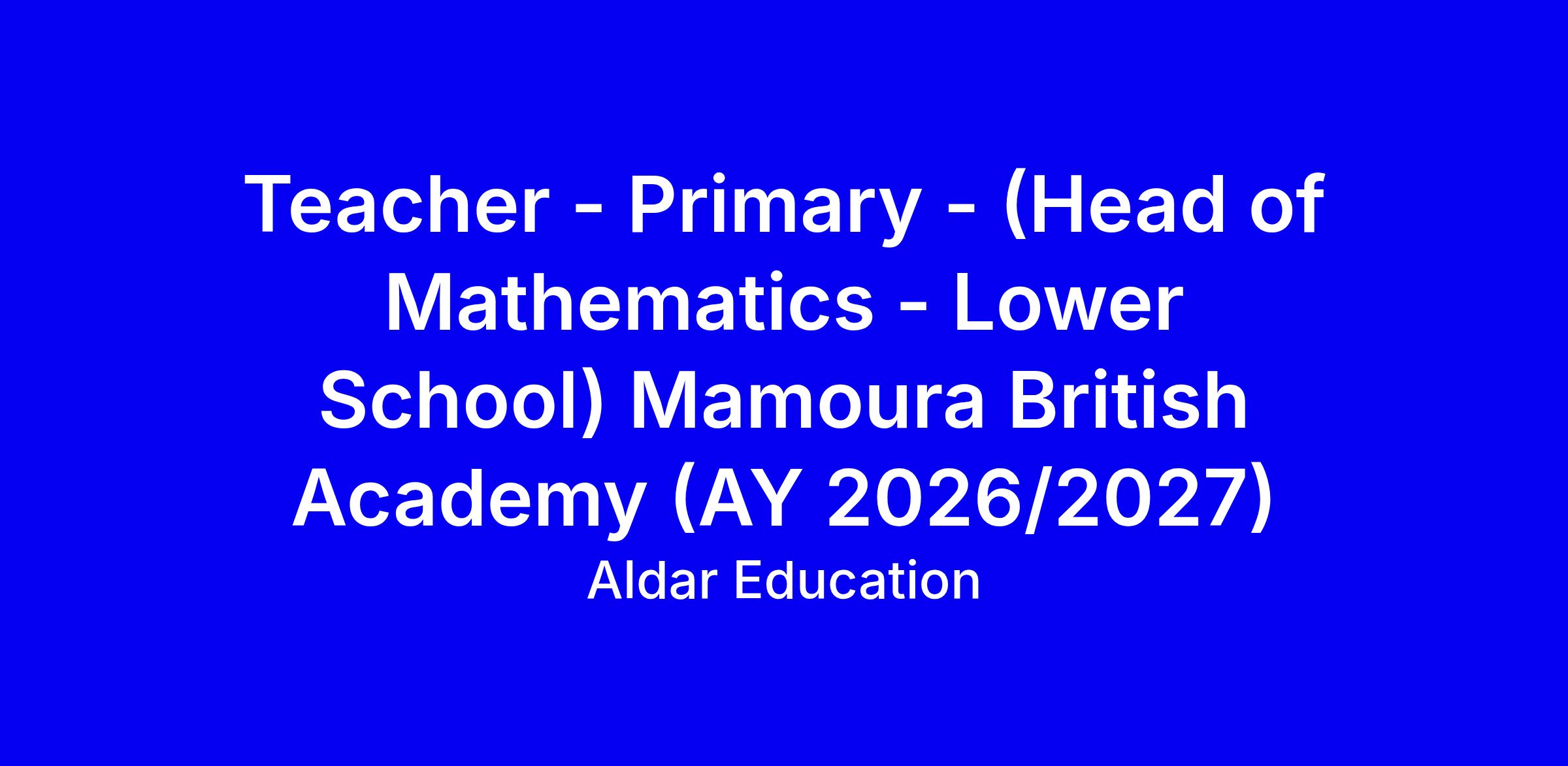 Aldar Academies are currently seeking an outstanding Teacher - Primary and Head of Mathematics (Lower School) for Mamoura British Academy in Abu Dhabi commencing August 2026.