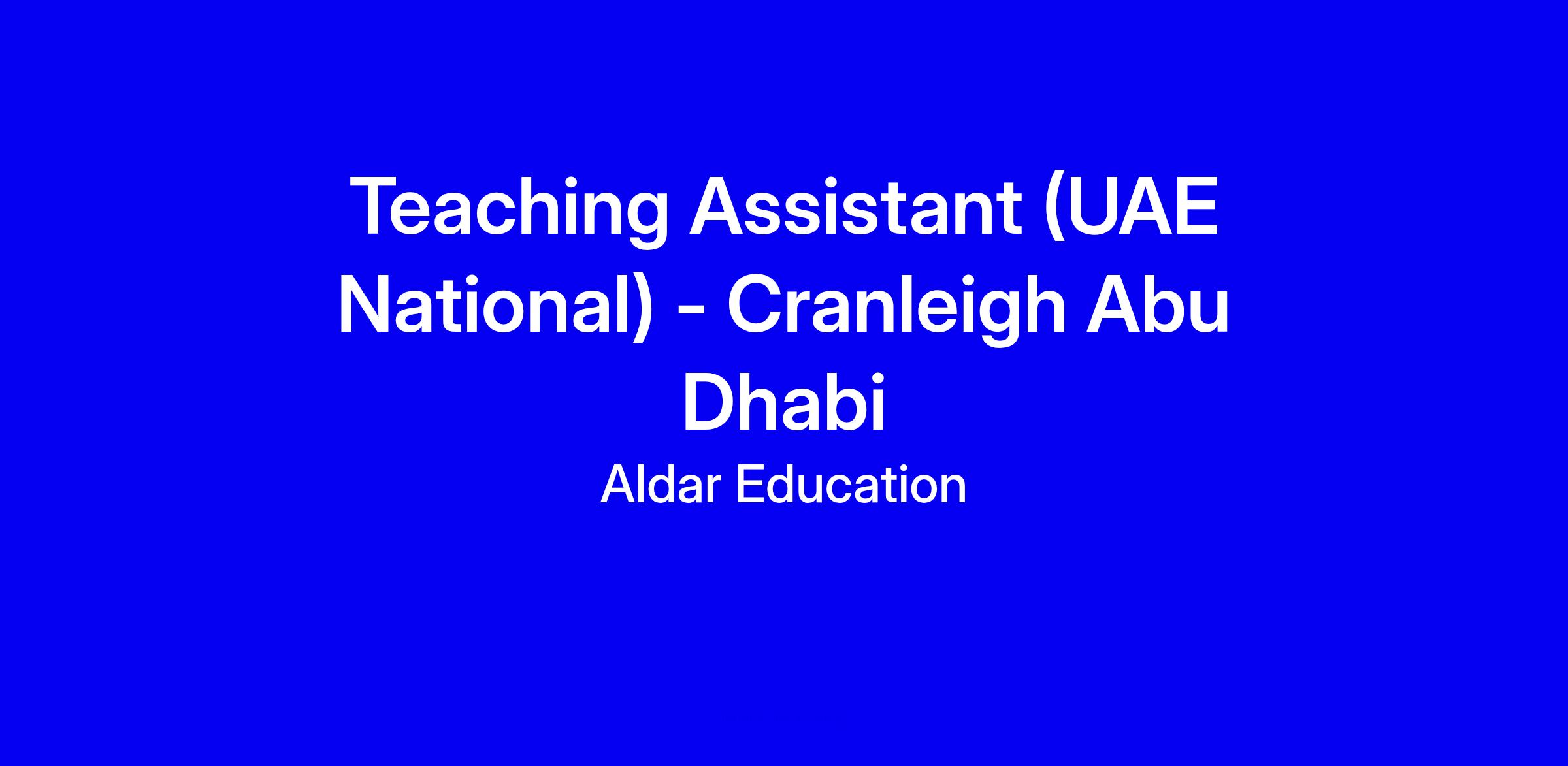 Cranleigh Abu Dhabi is currently seeking a Teaching Assistant (UAE National). This is an exciting opportunity to join the highly successful Aldar family of schools and to help shape the future of Abu Dhabi’s leading school group.