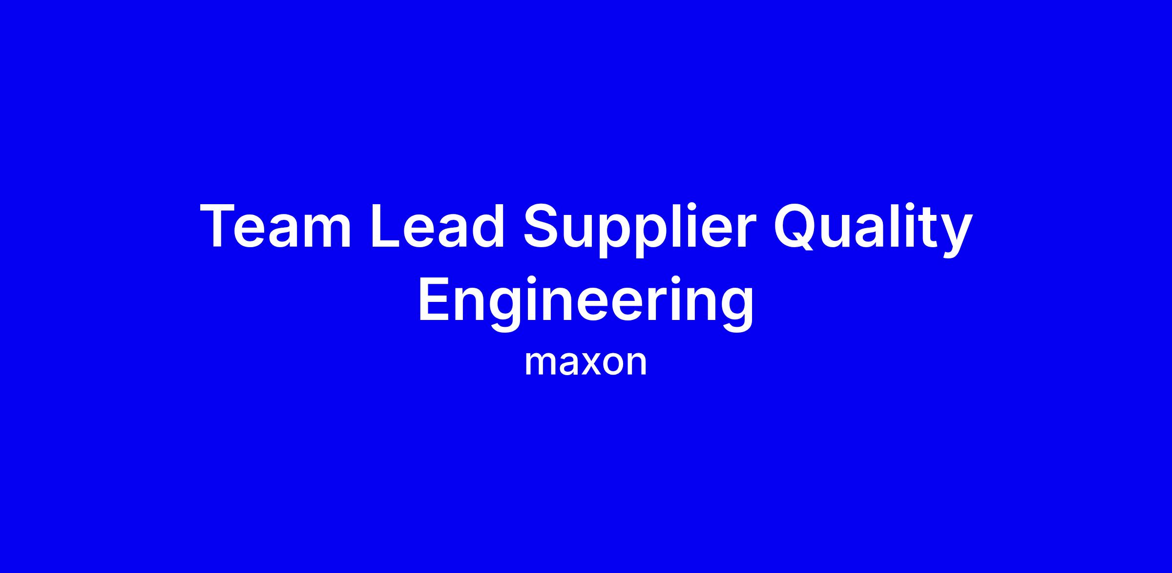 Team Lead Supplier Quality Engineering
