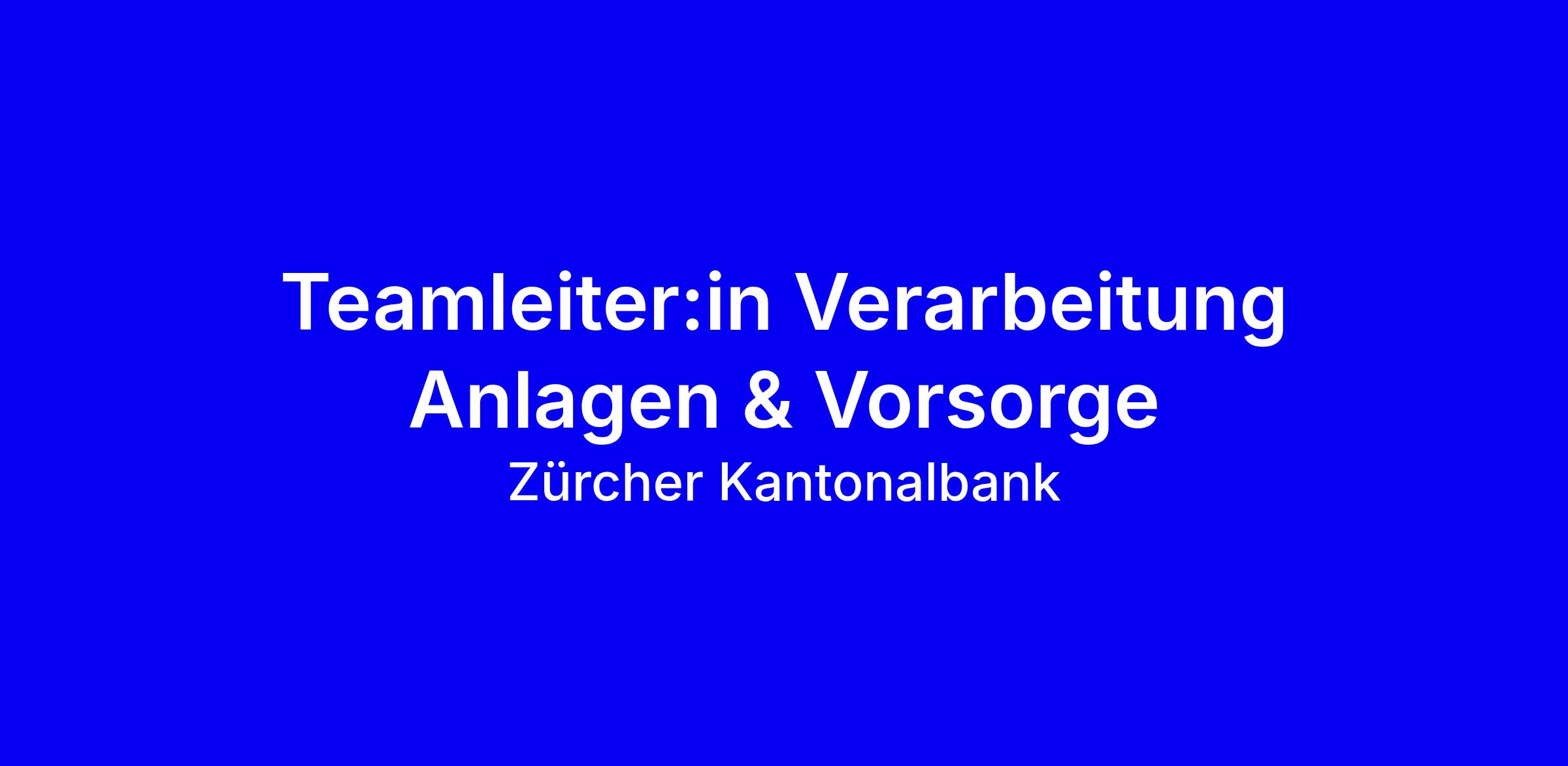 Teamleiter:in Verarbeitung Anlagen & Vorsorge