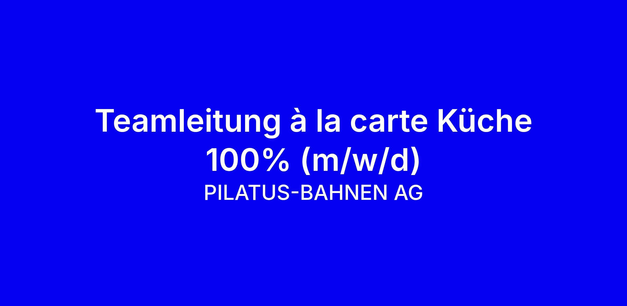 Für unsere À-la-carte-Küche auf Pilatus Kulm suchen wir per sofort oder nach Vereinbarung eine engagierte Teamleitung, die unser Küchenteam mit Erfahrung, Organisationstalent und Leidenschaft für Gastronomie führt. Du sorgst für einen reibungslosen Ablauf, unterstützt das Team und stellst die Qualität unserer Gerichte sicher. Wenn du Verantwortung übernehmen willst und Freude daran hast, unsere Gäste kulinarisch in einer atemberaubenden Bergkulisse zu begeistern, freuen wir uns auf deine Bewerbung.