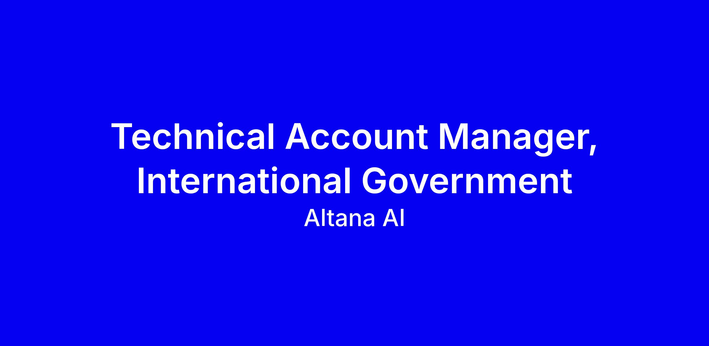 Altana is hiring a Technical Account Manager for International Government in London to guide public sector customers in adopting Atlas and delivering measurable value. You will own end-to-end deployments, become a power user of the platform, and conduct Quarterly Business Reviews while coordinating with Product, Engineering, and Sales to translate insights into enhancements and growth. The role requires 4 to 6 years in customer management or technology delivery, comfort explaining technical concepts to non technical stakeholders, and a proven track record of expanding technical accounts. UK Security Check clearance is required or eligible. Apply with government project examples, SQL or data analysis experience, and show how you balance strategy with hands-on delivery, confirming you are within commuting distance to Holborn and open to hybrid work.