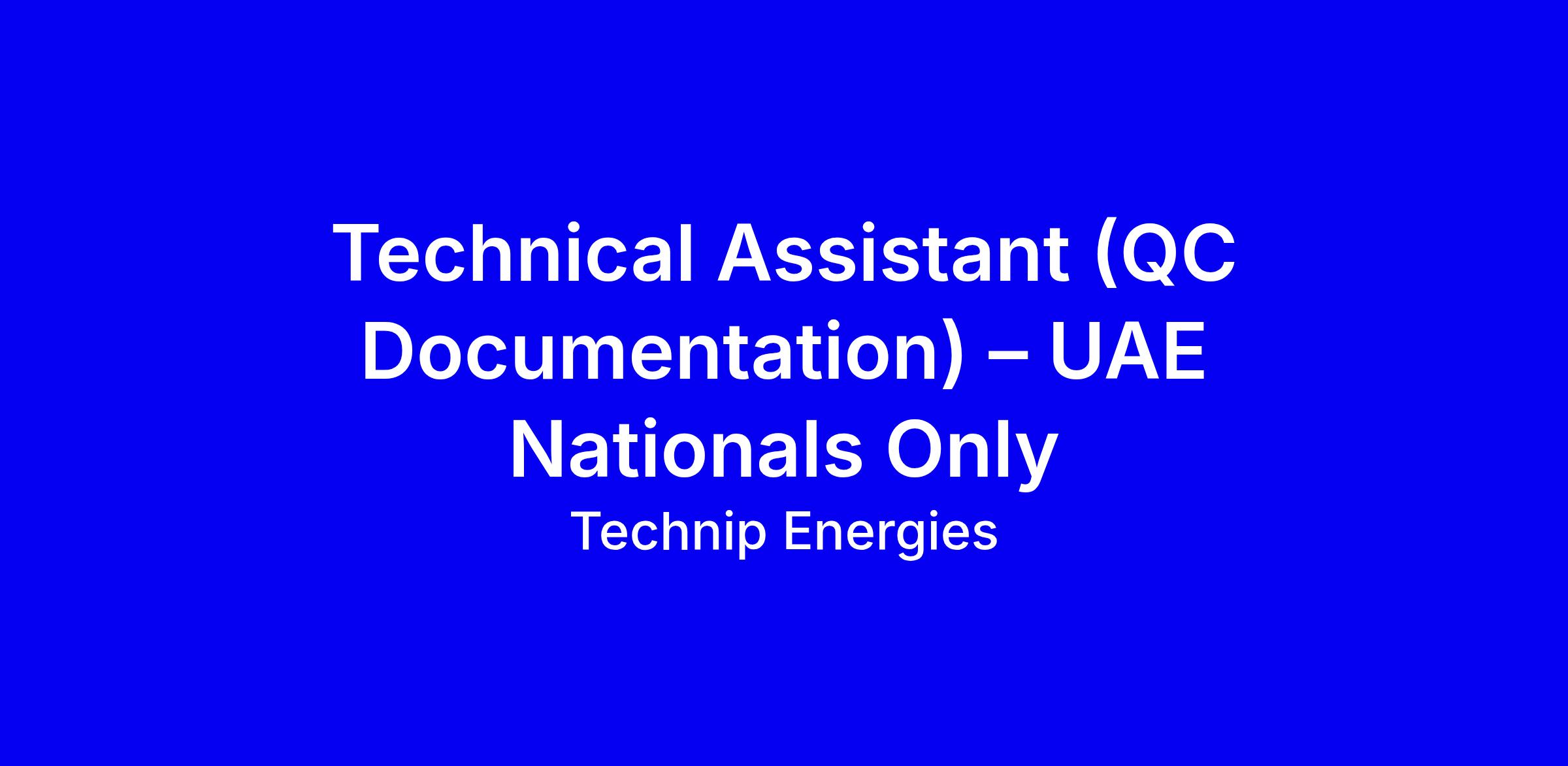 Technip Energies is seeking a UAE National Technical Assistant (QC Documentation) for a site-based role in Ruwais, with 6 months to 1 year of QC documentation or document control experience. The successful candidate will assist in organizing and maintaining QA/QC docs (RFIs, MIRs, WIRs, checklists, test packs), help compile MDR and turnover dossiers, and ensure proper filing, indexing and traceability in hard and soft copies using ACONEX or EDMS. Strong MS Office skills, solid organizational flow, and the ability to coordinate with QA/QC engineers and site teams are essential, as is adherence to ADNOC standards and HSE requirements. For best results tailor your CV to show document registers, transmittals, and fast, accurate document handling, and highlight your willingness to work on site. Start ASAP and apply now; monitor status via your candidate profile.