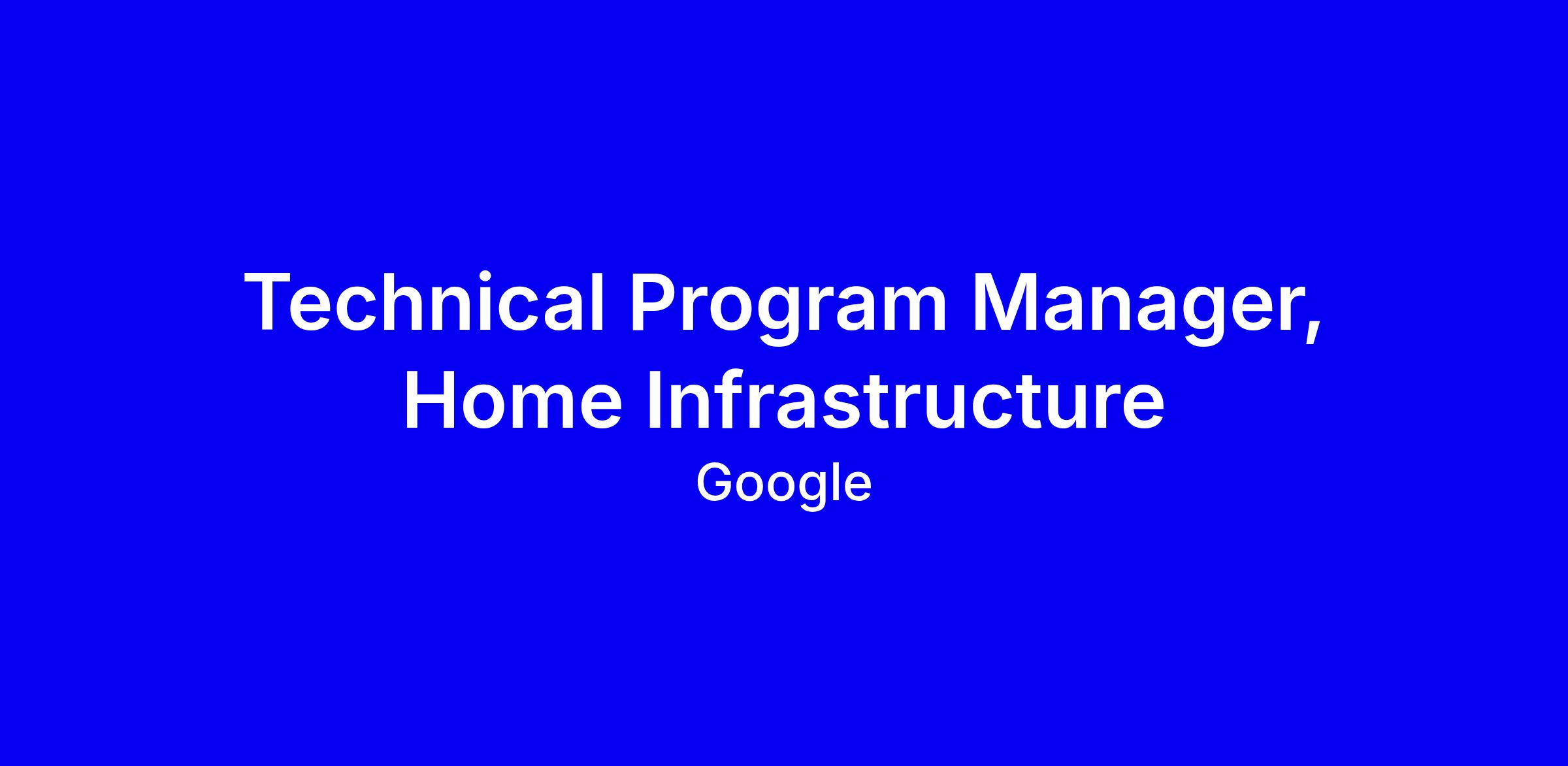 Google is seeking a Technical Program Manager for Home Infrastructure in Zürich for a full-time onsite role. You’ll lead infrastructure engineering programs from planning to delivery, drive migrations and system health initiatives, and reduce technical debt while coordinating with engineering, product and executive teams. Minimum qualifications include a Bachelor's in CS or related field or equivalent experience, 5 years in program, release, or engineering management on software and machine learning projects, and experience managing the full lifecycle of migrations and quality improvements. Preferred qualifications emphasize cross-functional and global program leadership, a strategic product mindset, self-direction, a proven delivery record, strong problem solving, and executive communication. To strengthen your application, tailor your resume to show measurable outcomes from migrations or reliability work, demonstrate navigating ambiguity, highlight cross-functional collaboration and dashboards, and prepare concise executive level narratives around risk and milestones.