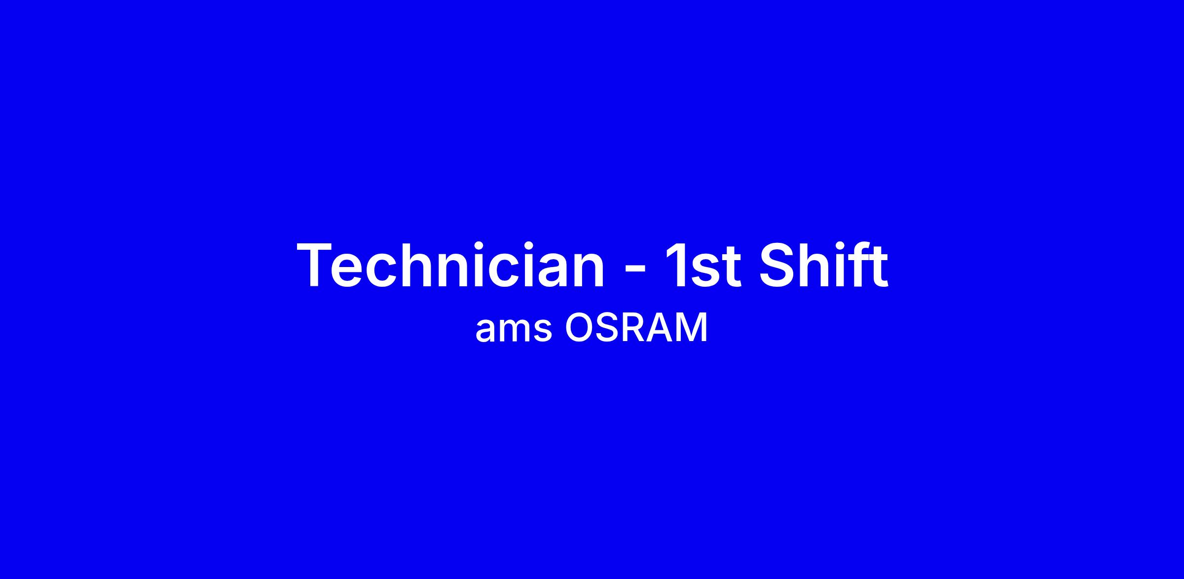 ams OSRAM is hiring a 1st Shift Technician in Hillsboro NH to oversee daily production and maintain high-speed lamp making equipment on the line. You will lead teams, drive process improvements, and keep production, quality, and maintenance records up to date while working with maintenance foremen and engineers for continuous improvement. Requirements include a HS diploma or GED, 2-5 years of related mechanical and technical experience, willingness to pursue training or certifications, strong communication, and the ability to meet physical demands with overtime and weekend work as needed. To apply, tailor your resume to maintenance and teamwork and contact Irina Havey at [email protected] or +1 603 464 7164 ext 647164. Benefits include competitive pay and growth opportunities.