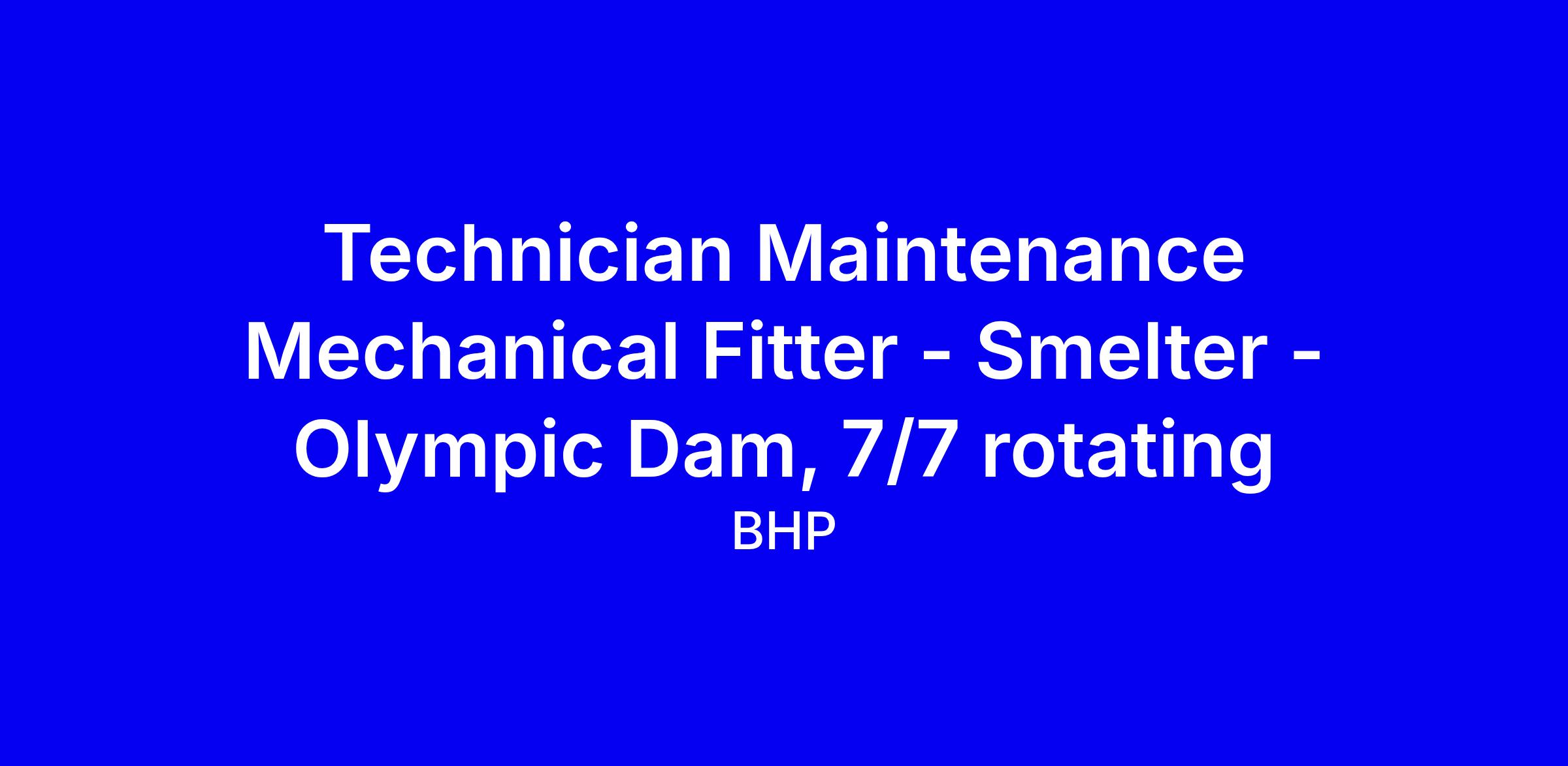 An opportunity exists for a qualified Mechanical Maintenance Technician to work within our Olympic Dam asset, performing planned, unplanned and breakdown maintenance activities within the Smelter plant of our surface operations.