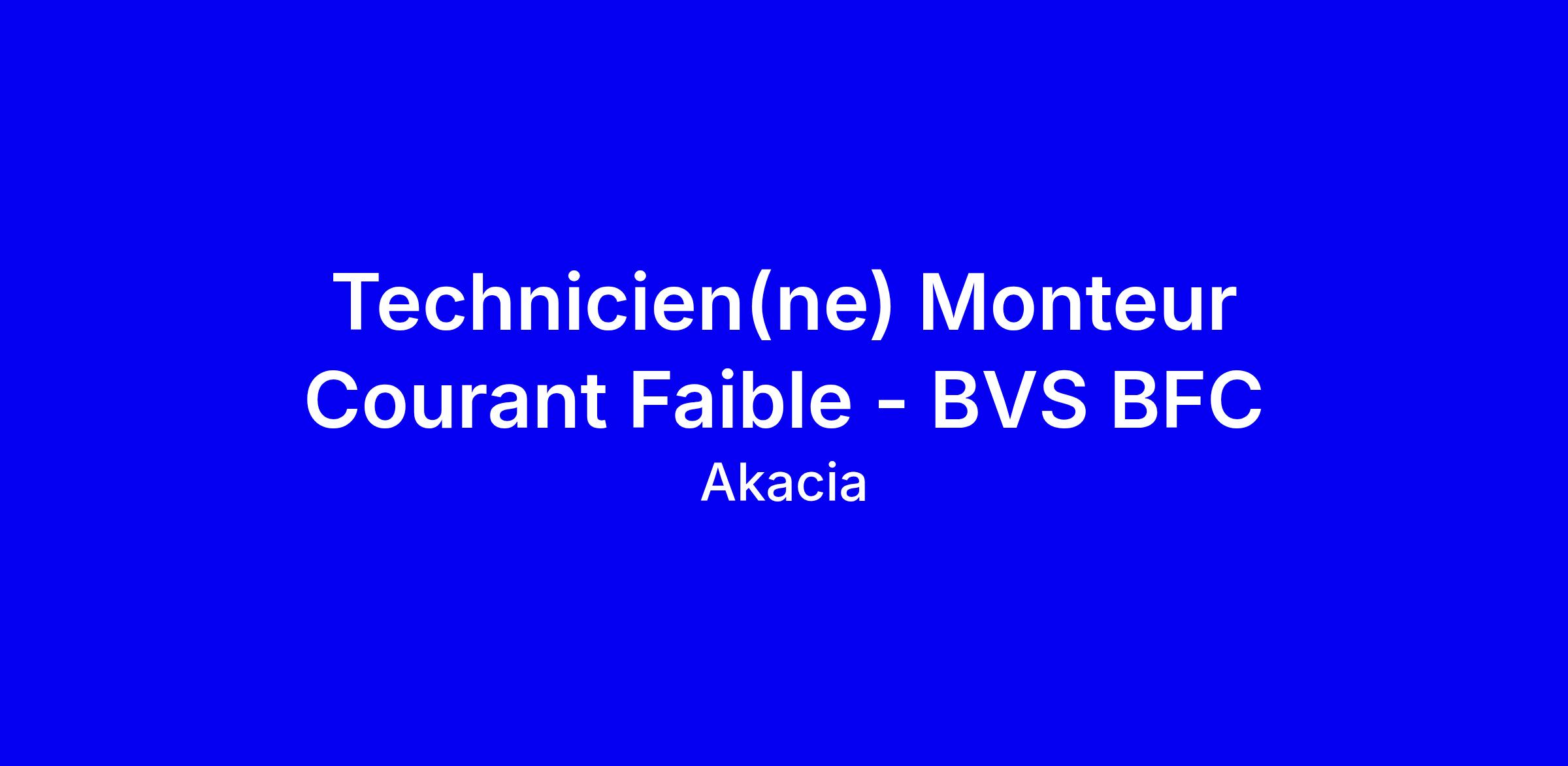 🔎 BVS recrute un(e) Technicien(ne) Monteur Courant Faible pour renforcer notre équipe technique.