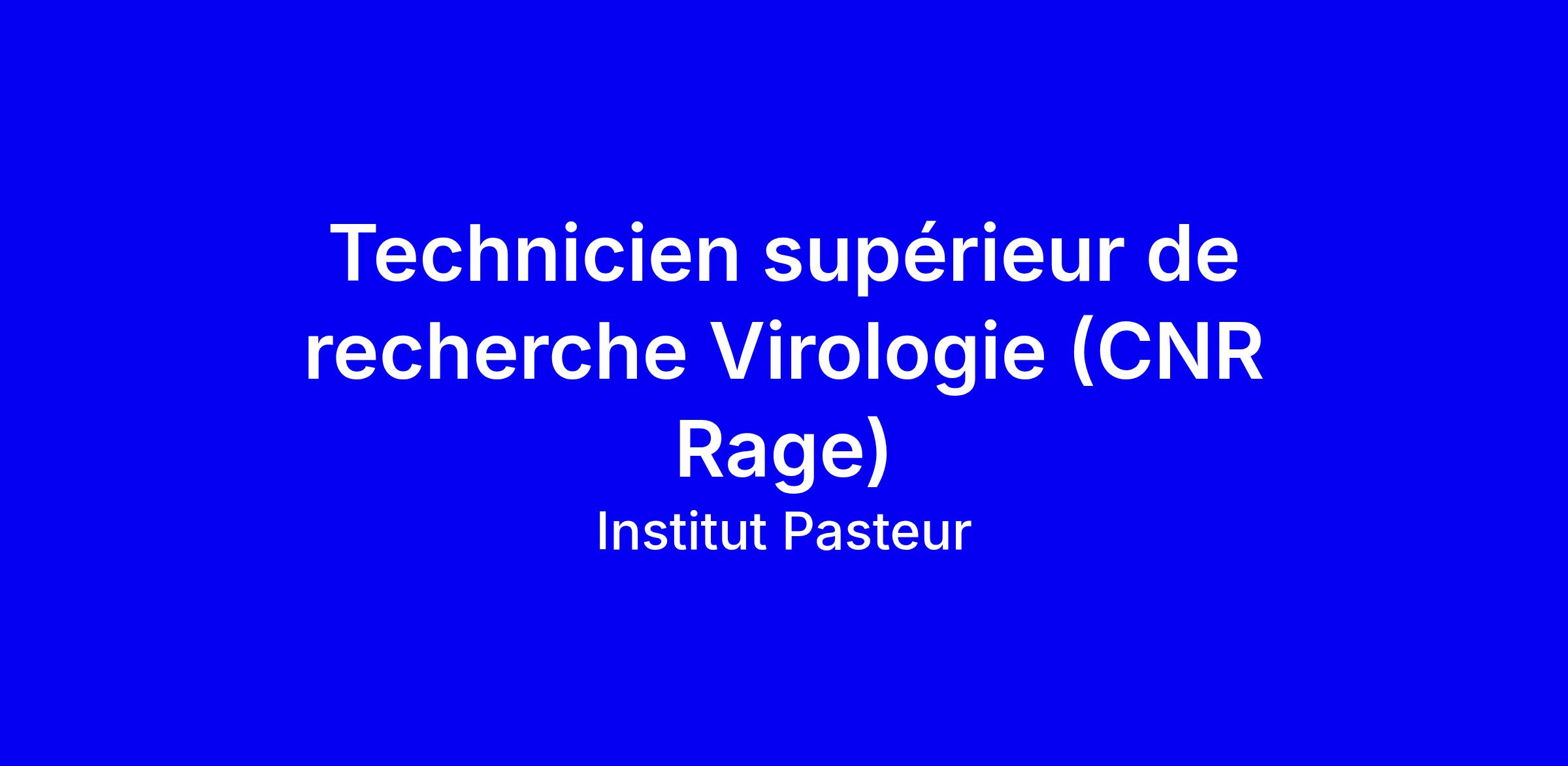 Technicien supérieur de recherche Virologie (CNR Rage) - H/F/X