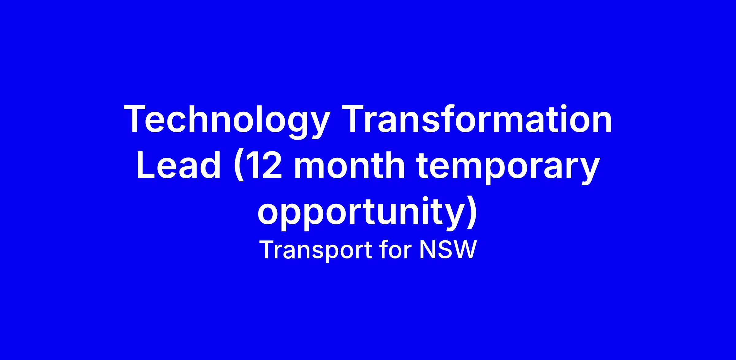 be working as part of Group IT, leading a transformative technology program for Transport for NSW.
