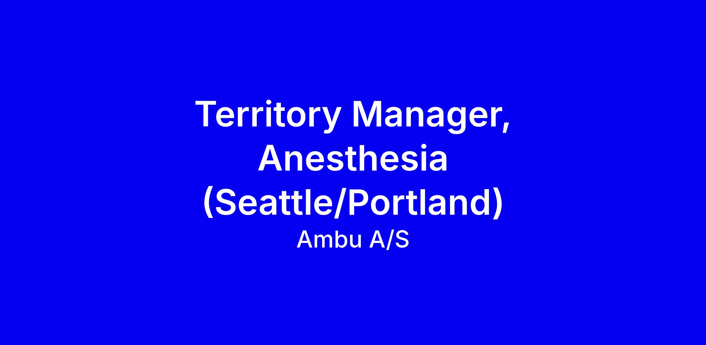 Ambu A/S seeks a Territory Manager, Anesthesia to cover Seattle and Portland, reporting to the Regional Sales Director, Anesthesia. You will grow revenue and market share for Ambu Anesthesia by converting new and competitive accounts and expanding current usage, while managing a Salesforce pipeline and collaborating with cross-unit teams. Travel is required in the territory, with occasional overnight trips. Qualifications include a bachelor’s degree or equivalent, B2B sales experience, communication and resilience, and the ability to meet vendor credentialing; residency in the territory and a valid license are required. To apply, tailor your resume to quantify healthcare wins, highlight health-economics skills, and demonstrate Ambu values Take Charge, Team Up, Be True, plus CRM proficiency.