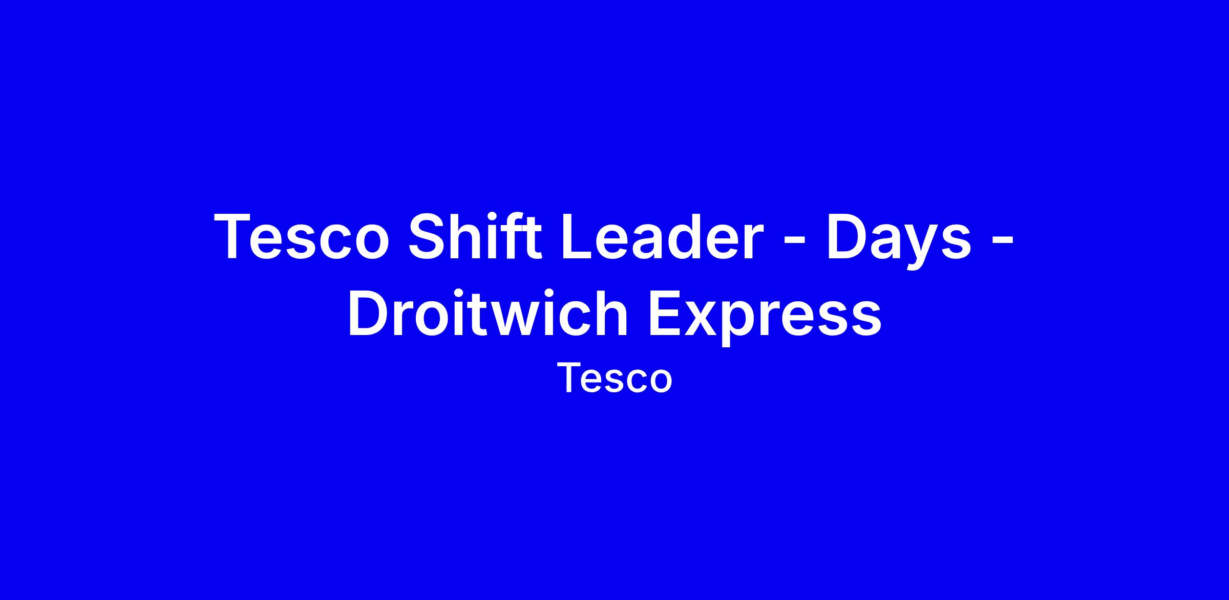 Tesco UK • Droitwich • Permanent • Working hours 36 • Apply by 28-Feb-2026