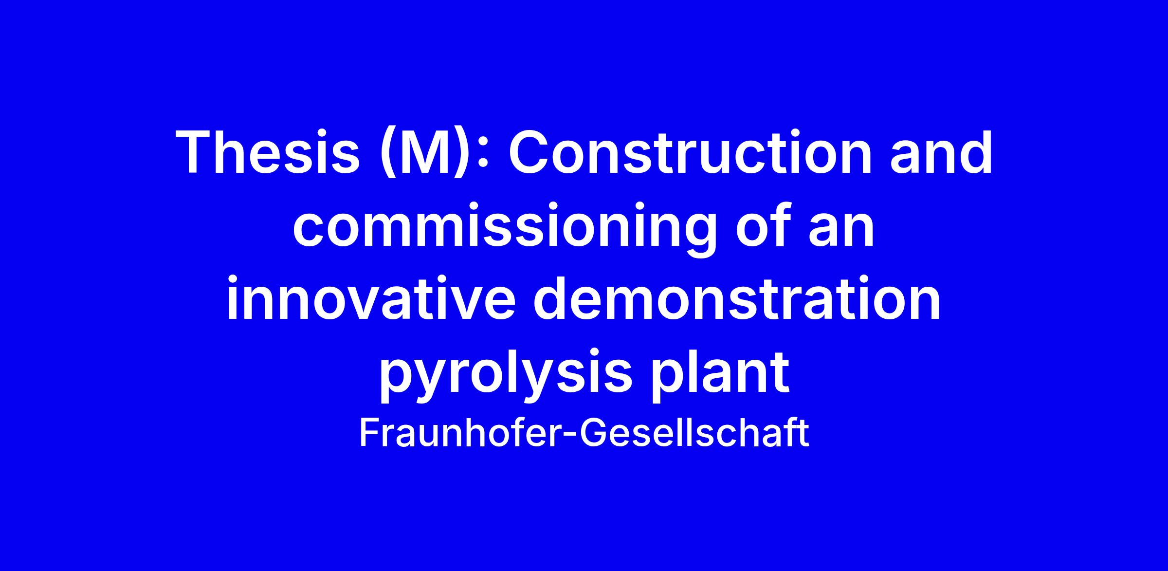 Fraunhofer UMSICHT offers a master's thesis position on constructing the VINTER250 pyrolysis plant within the SEAFAIRER project in Sulzbach. You will prepare and execute experiments, commission the plant, document campaigns, maintain databases, and conduct research. Must have a degree in process engineering, chemical engineering, environmental engineering or energy engineering or a related field; ability to work independently; a valid Class B driving license; proficient Office skills; English at least B1. Nice to have: technical understanding, hands-on mindset, German B1. The role features flexible hours, onboarding and a supportive culture. To apply, tailor your CV to show project work and documentation, and clearly state language skills and mobility readiness; contact Mr Pascal Schwarz with questions.