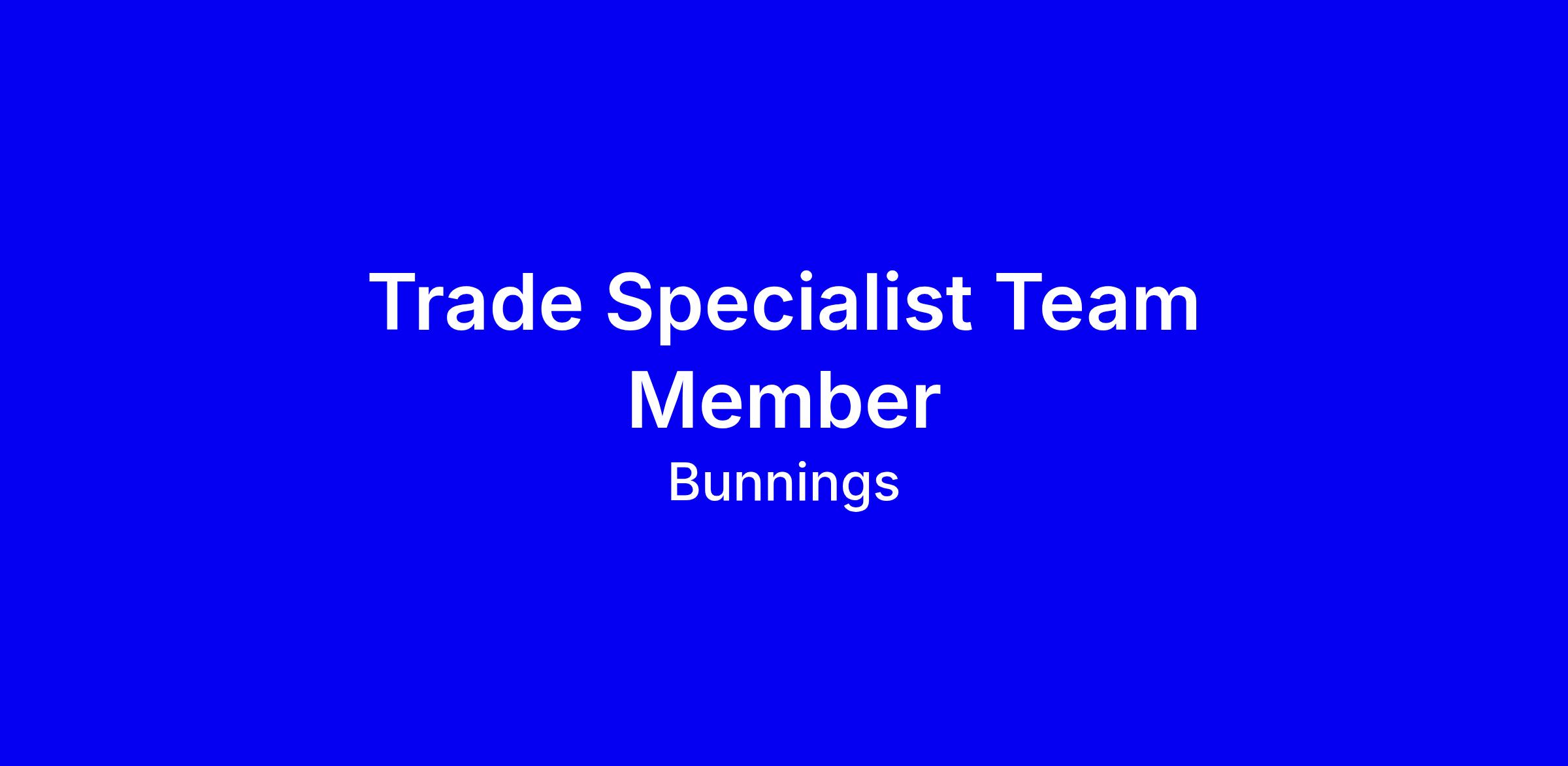 The Trade Specialist role offers an opportunity for further growth at Bunnings with multiple pathways available into areas such as Quoting, Account Management, Business Development and many more.