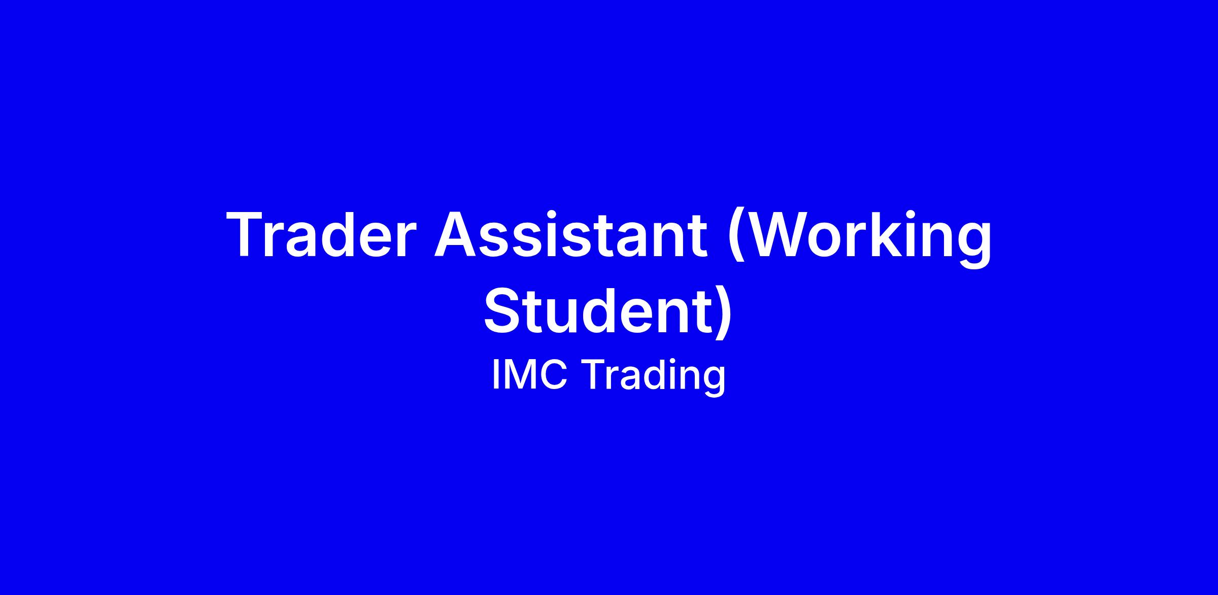 IMC Trading is hiring a part-time Trader Assistant (Working Student) in Amsterdam for at least six months to gain experience while contributing to the trading team. You’ll analyze data, build tools to ease traders’ work, and collaborate with traders and engineers, supported by a mentor and connections to full-time colleagues. Requirements: be in the penultimate year of a quantitative program, graduating in 2026 or 2027, with Python experience, strong analytical skills, and a real interest in financial markets, able to work 20 hours per week on site. Tip: highlight Python projects, data analytics, teamwork, and your eagerness to learn about trading; note the nine-month cooldown if you’ve recently applied for a Trading role.