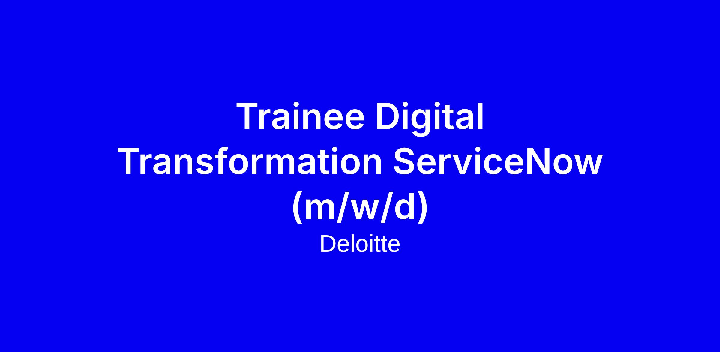 Als Trainee Digital Transformation ServiceNow (m/w/d) bei Deloitte unterstützen Sie Kunden dabei, digitale Workflows zu automatisieren. Das Programm ist Vollzeit onsite an Standorten Berlin, Düsseldorf, Frankfurt, Hamburg, Hannover, Köln, Leipzig, München und Stuttgart. Sie absolvieren ServiceNow Fundamentals sowie weitere Trainings und Zertifizierungen kombiniert mit Deloitte-Methoden für agiles Projektmanagement, und sind nach sechs Wochen bereit für Ihr erstes ServiceNow-Projekt in IT, IoT, Supply Chain oder HR. Danach arbeiten Sie eng im fachlichen und technischen Verlauf der Projekte mit, profitieren von Best-in-class Weiterbildung, strukturierter Karriereplanung und flexiblen Arbeitsmodellen. Bewerben Sie sich online mit CV und relevanten Zeugnissen, ein Anschreiben ist nicht nötig, FAQs helfen weiter. Wir freuen uns auf Ihre Bewerbung.