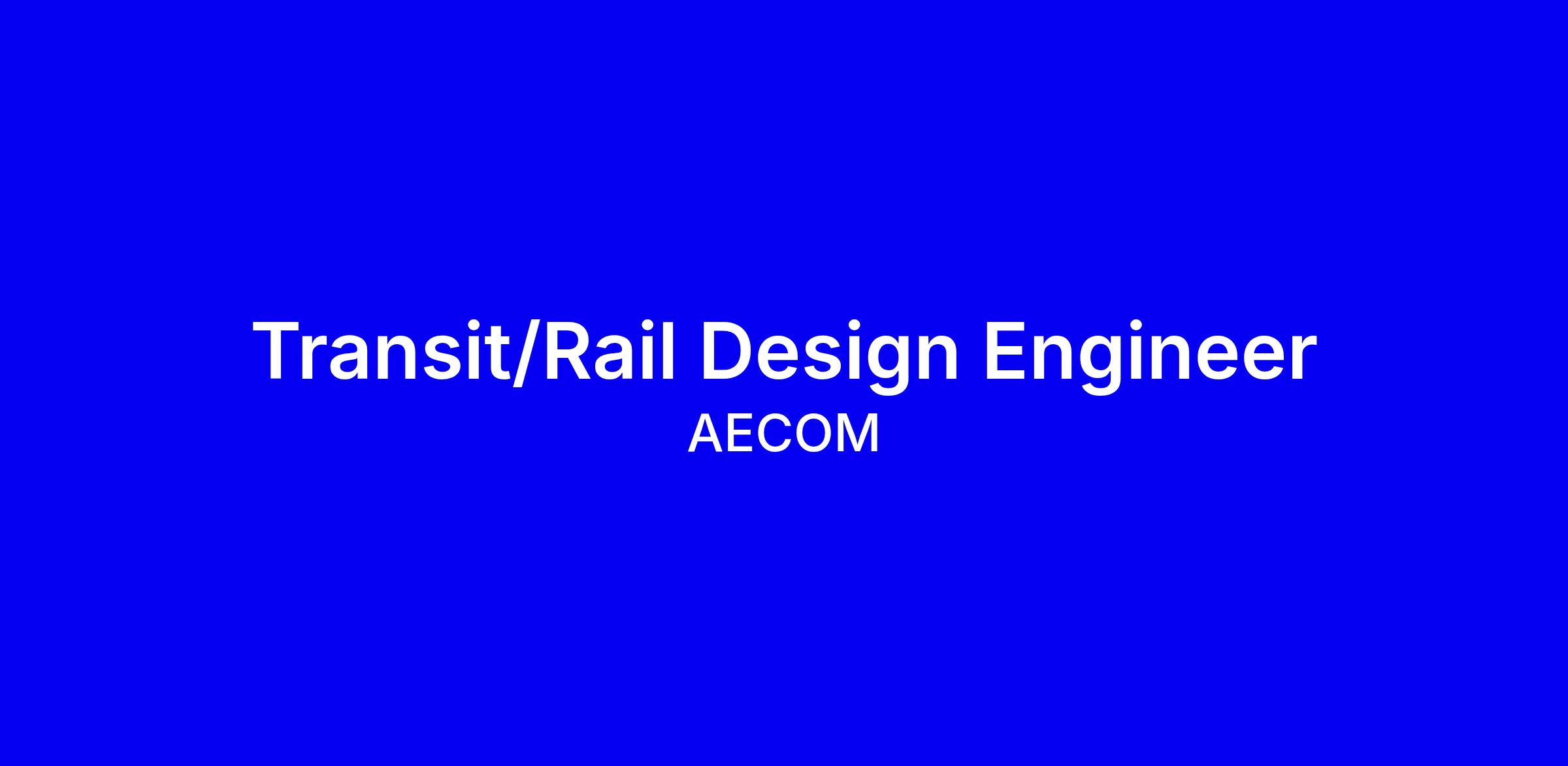 AECOM is seeking a Transit/Rail Design Engineer III to be based in Murray, UT.