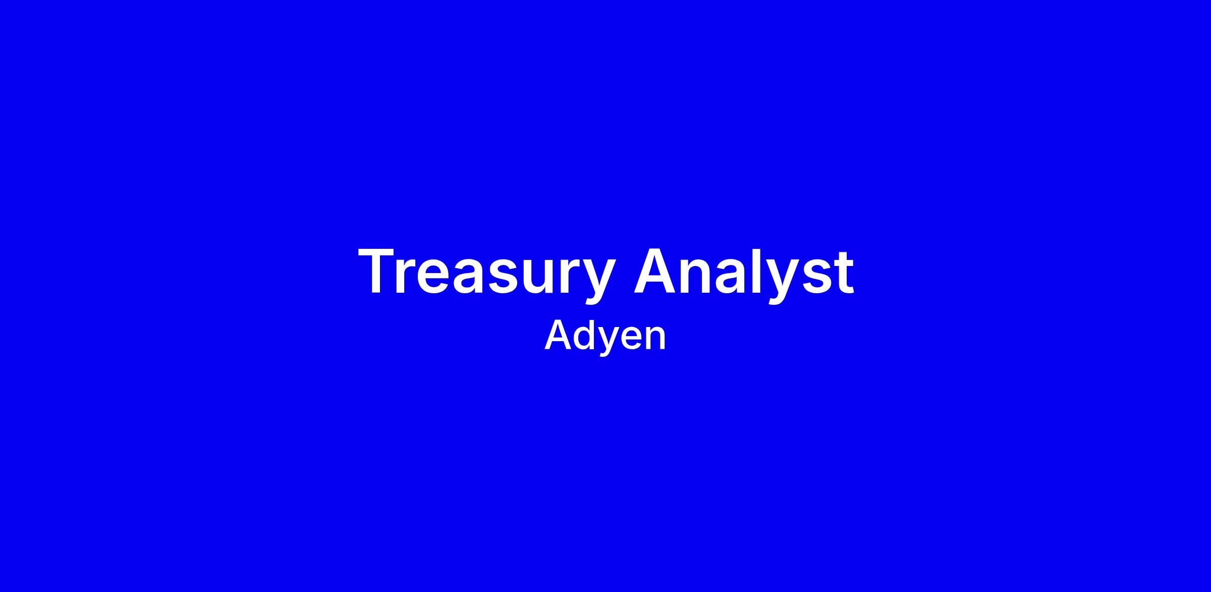 We are looking for a Treasury Analyst to join the Merchant Finance and Treasury (MF&T) team in Amsterdam. As Merchant Finance & Treasury we are the financial backbone of Adyen; optimizing and automating financial processes for scale, mitigating risks, and enabling growth through customer-centricity, operational excellence, innovation and integrity.