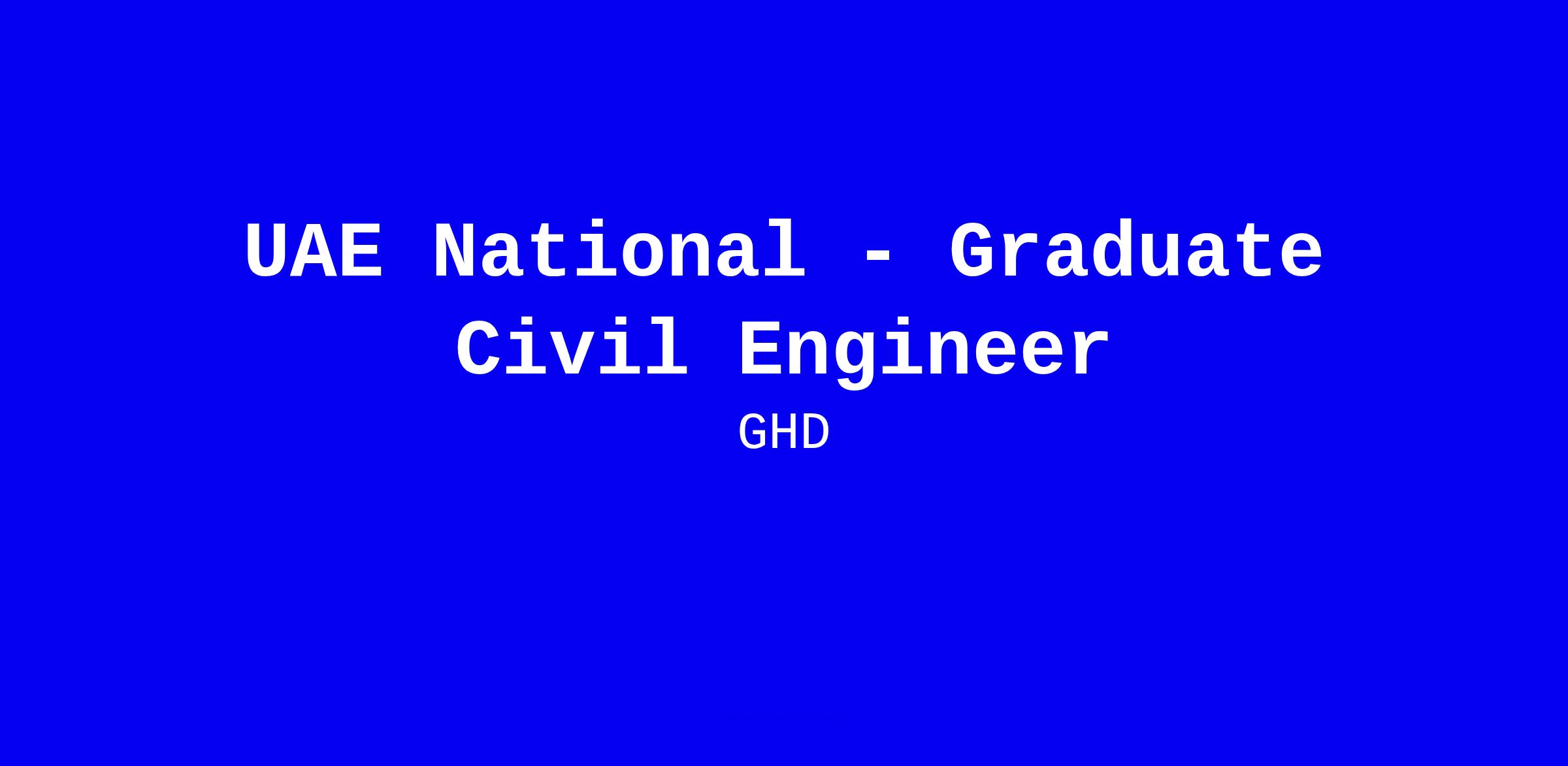 GHD is hiring a UAE National Graduate Civil Engineer for a full time onsite role in Abu Dhabi, offering hands on experience across water energy and resources environment property and buildings and transportation. The position combines engineering inspections under supervision process design improvement and innovation contract and project management product and solution development and engineering standards specification with a strong emphasis on knowledge management and personal capability building. Typically you will work with minimal supervision while potentially guiding others, and you will interact with clients and subcontractors as needed. A bachelor’s degree is required. To apply effectively tailor your CV to showcase internships or relevant coursework regulatory awareness collaboration skills and a commitment to ongoing learning and an inclusive culture. GHD is an equal opportunity employer that values diversity and inclusion.
