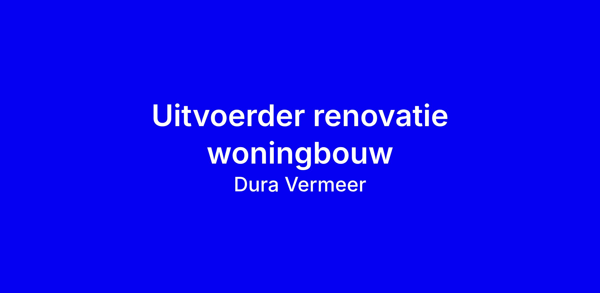 Dura Vermeer is een familiebedrijf. Een onafhankelijke bouwonderneming actief in woningbouw, utiliteitsbouw, infrastructuur en techniek in Nederland. Al sinds 1855 vormen onze onafhankelijkheid en langjarige continuïteit de basis voor onze strategie. Met een omzet van circa € 1,8 miljard en ruim 3.000 medewerkers behoren we tot de top van de Nederlandse bouwsector. Samen realiseren we prachtige projecten. Iconische, en soms ook alledaagse projecten waarmee we nieuwe antwoorden bieden op maatschappelijke vraagstukken. Waarmee we de beste oplossingen voor morgen garanderen en het verschil maken voor Nederland, juist op de langere termijn.