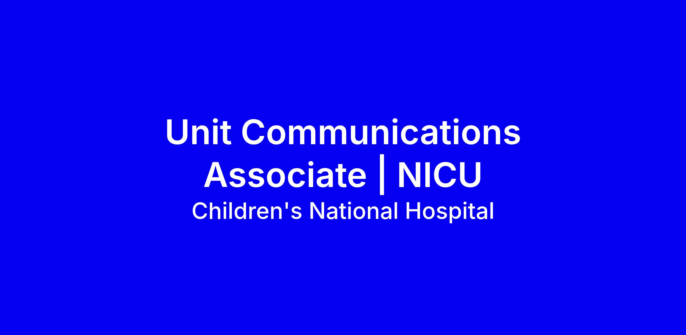 Unit Communications Associate | NICU - (2600006V)Description