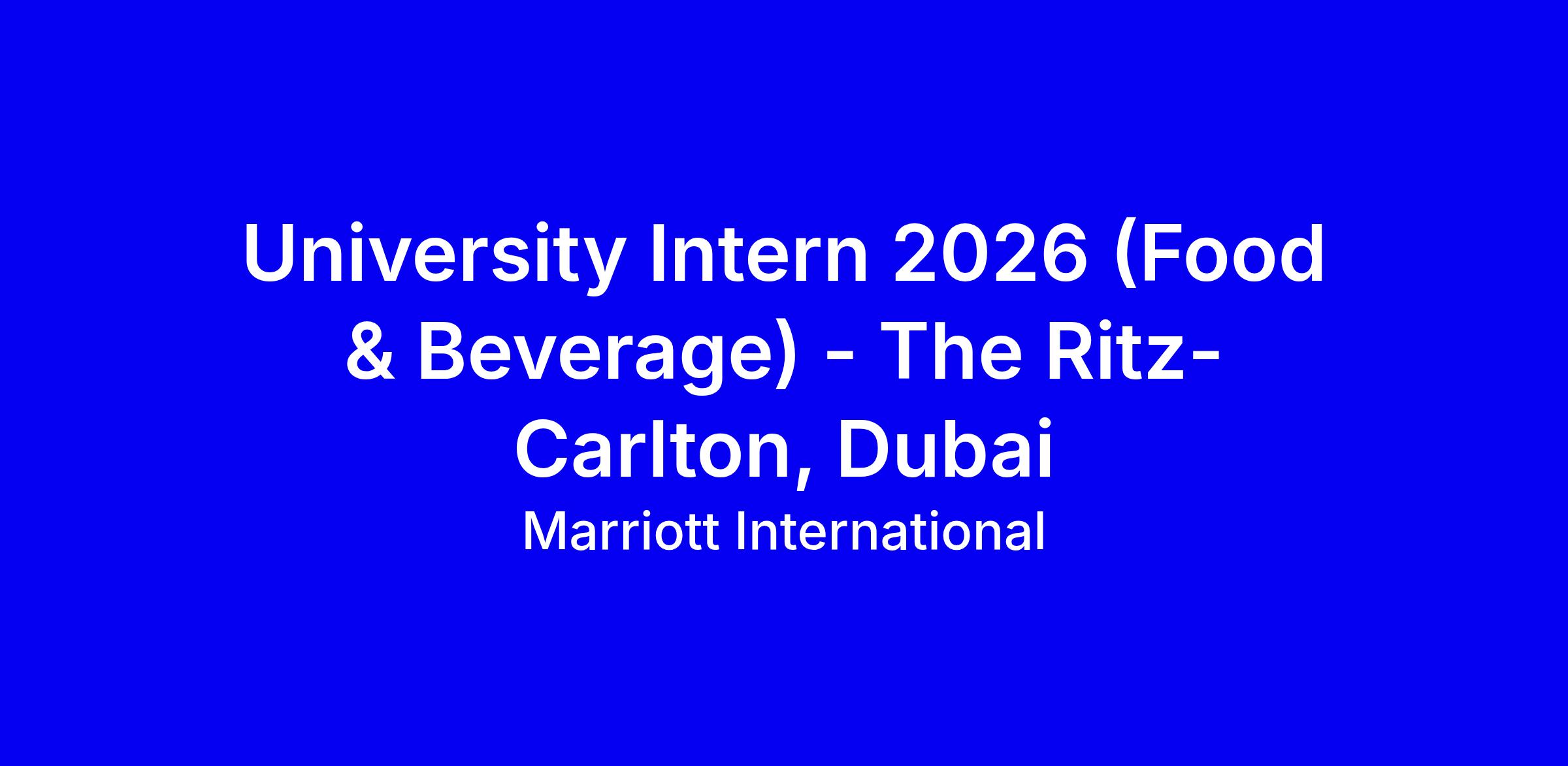 University Intern 2026 (Food & Beverage) at The Ritz-Carlton, Dubai offers a full-time onsite opportunity within Marriott International’s Hotel Internship Program. Build on classroom studies by learning first-hand how a luxury hotel operates, with rotations across departments to gain hands-on experience and discover where your strengths lie in hotel management. This internship is designed for current college or university students who want to kickstart a travel industry career and may lead to opportunities after graduation. To apply, tailor your resume to hospitality and F&B, highlight relevant coursework and service or leadership roles, show teamwork and adaptability, and demonstrate alignment with Marriott culture while noting eligibility and Dubai location. Marriott is an equal opportunity employer.