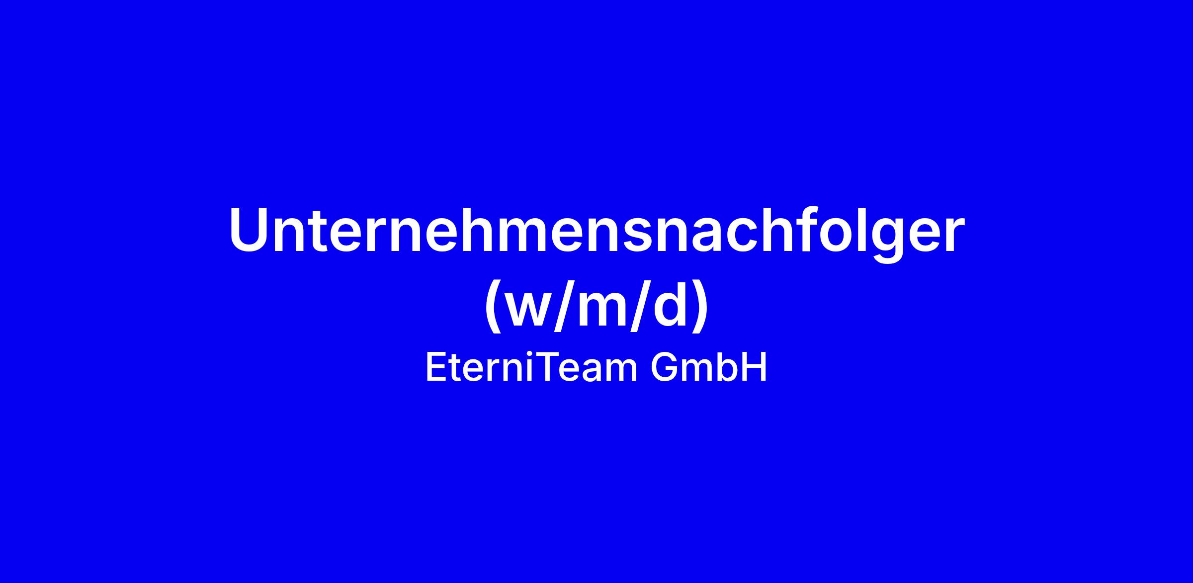 EterniTeam hat die Lösung für Deutschlands größtes Problem im Unternehmertum: die Unternehmensnachfolge. Mit einem neuen, revolutionären Ansatz sichern wir die Nachfolge einiger der gut 1 Millionen Unternehmen, die alleine in diesem Jahrzehnt noch ihre Nachfolge regeln wollen bzw. müssen. Dabei stellen wir sicher, dass alle Beteiligten von der Lösung profitieren: die scheidenden und nachfolgenden Unternehmer:Innen und auch die Mitarbeitenden.