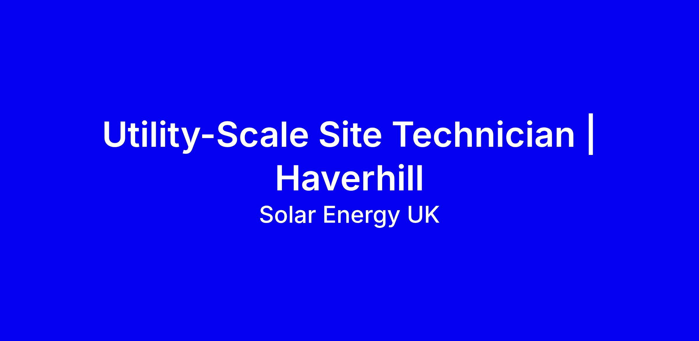 By completing this application Solar Careers UK can help connect you to Utility-Scale Site Technician | Haverhill live job vacancies that match your skills and experience, and provide guidance on the qualifications and training needed to pursue your chosen career in the solar sector.