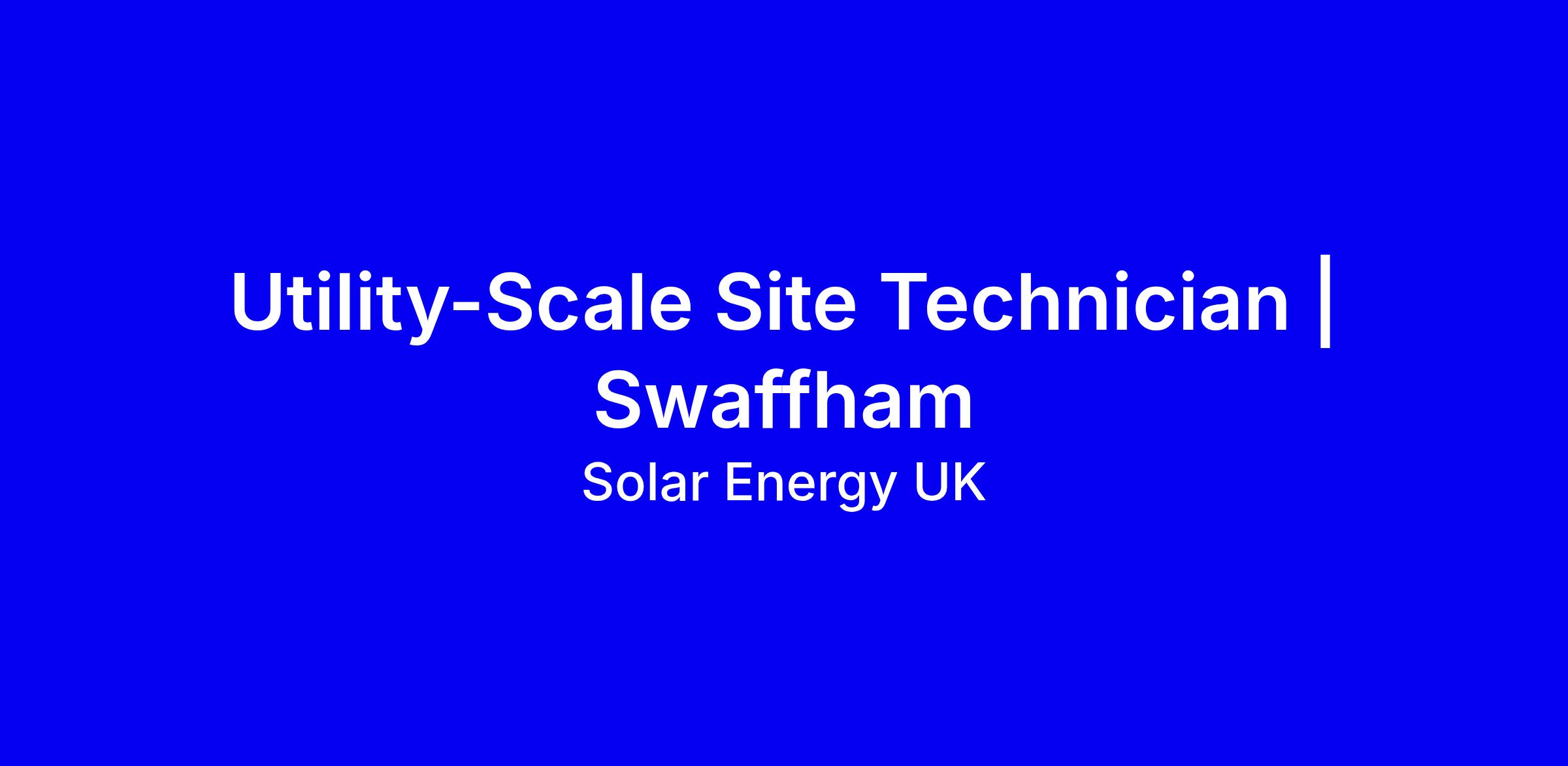 Solar Careers UK, a division of Solar Energy UK, is recruiting for a Utility-Scale Site Technician in Swaffham to join teams delivering PV systems. The role covers operation, maintenance, performance optimization, safety, with coordination with LV/HV teams. When applying, highlight PV experience and travel readiness; you’ll be connected to live vacancies and guidance on qualifications. Key requirements include experience with utility-scale PV systems, network diagnostics, earthing, inverters, strong Excel and monitoring software skills, and a solid electrical engineering background. Essential qualifications include Level 3 award in electrical/mechanical/engineering plus an apprenticeship and an ECS Gold Card; new entrants welcome and PV training is desirable. Benefits include salary and development opportunities.
