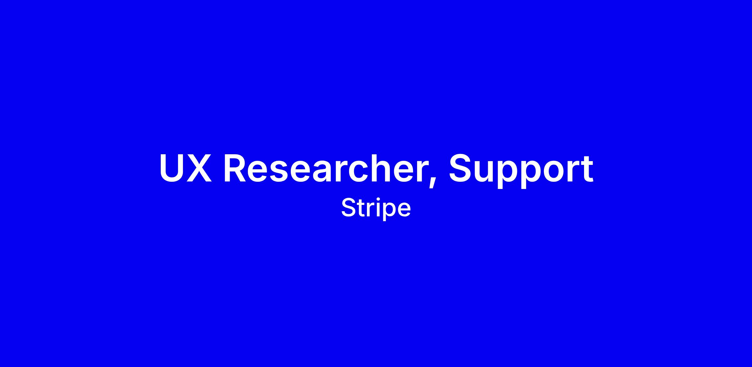 We’re looking for an experienced, well-rounded mixed-methods UX Researcher to join our growing UX Research team to partner with Stripe’s Support organization to build world-class product experiences in a creative environment. You will also collaborate with a diverse group of researchers from many disciplines, skills, backgrounds, and specialties.