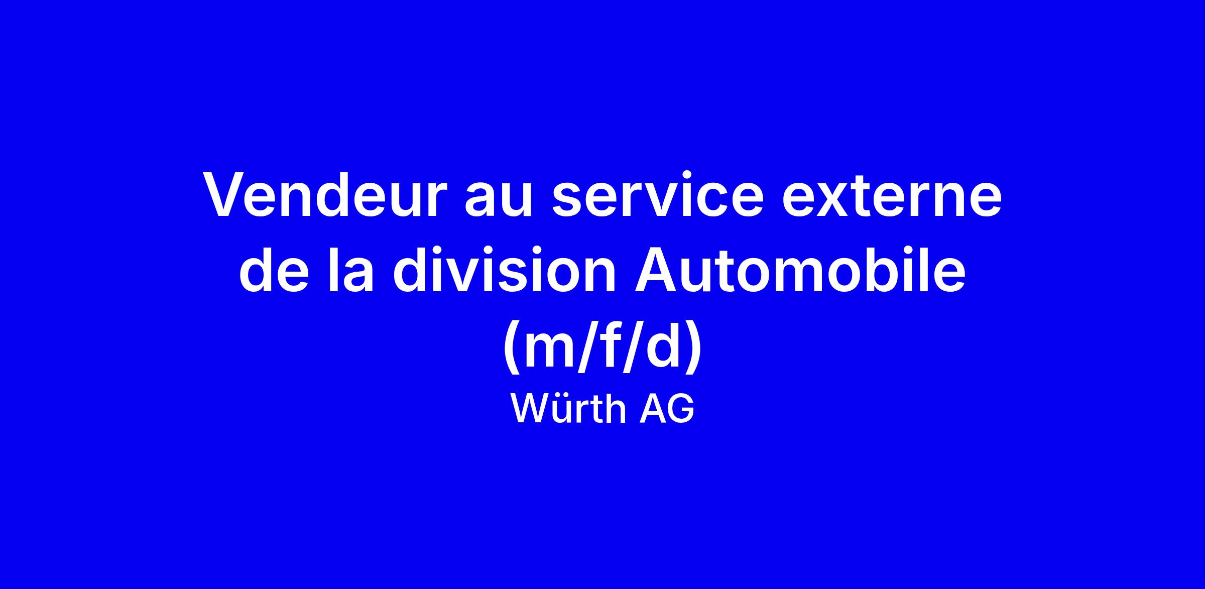 Vendeur externe pour la division Automobile, Würth AG, Fribourg/Bulle, CDI à plein temps et sur site. Vous bâtissez des relations stratégiques et durables avec les artisans grâce à une approche omnicanal liant vente directe, Shops Würth, E-Business et Télévente et vous cherchez les meilleures solutions pour maximiser le bénéfice client. Vous développez le portefeuille en conquérant de nouveaux clients et en renforçant les comptes existants, avec un fort sens du service et du réseau. Profil recherché : formation commerciale ou artisanale, excellente communication, esprit entrepreneurial, motivation et permis B. Conseils : personnalisez CV et lettre, mettez en avant vos succès en prospection et fidélisation, et montrez votre capacité à orchestrer plusieurs canaux. Contact: M. Fabio Carparelli, HR Business Partner.