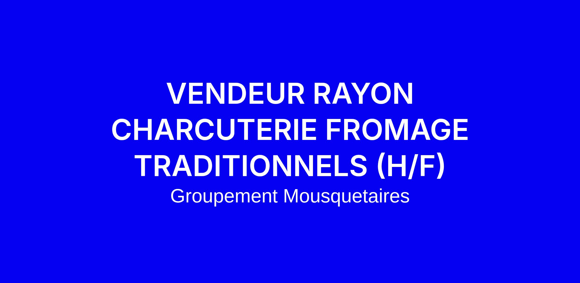 Le Groupement Mousquetaires recrute un vendeur rayon charcuterie fromage traditionnels (H/F) en CDD d’un mois renouvelable, à temps plein (36 h 45), sur site à Frontignan. Sous la supervision du manager, vous accueillez les clients, les guidez vers les produits adaptés et animez le rayon en respectant l’hygiène et l’information prix. Vous assurez l’approvisionnement et valorisez les partenariats avec producteurs et commerçants. Profil recherché : sens du service, esprit d’entreprendre et passion des bons produits; une première expérience en rayon traditionnel est un plus. Pour postuler, adaptez CV et lettre, mettez en valeur vos stocks et votre esprit d’équipe et montrez votre motivation à suivre les parcours de développement et votre engagement envers la diversité.