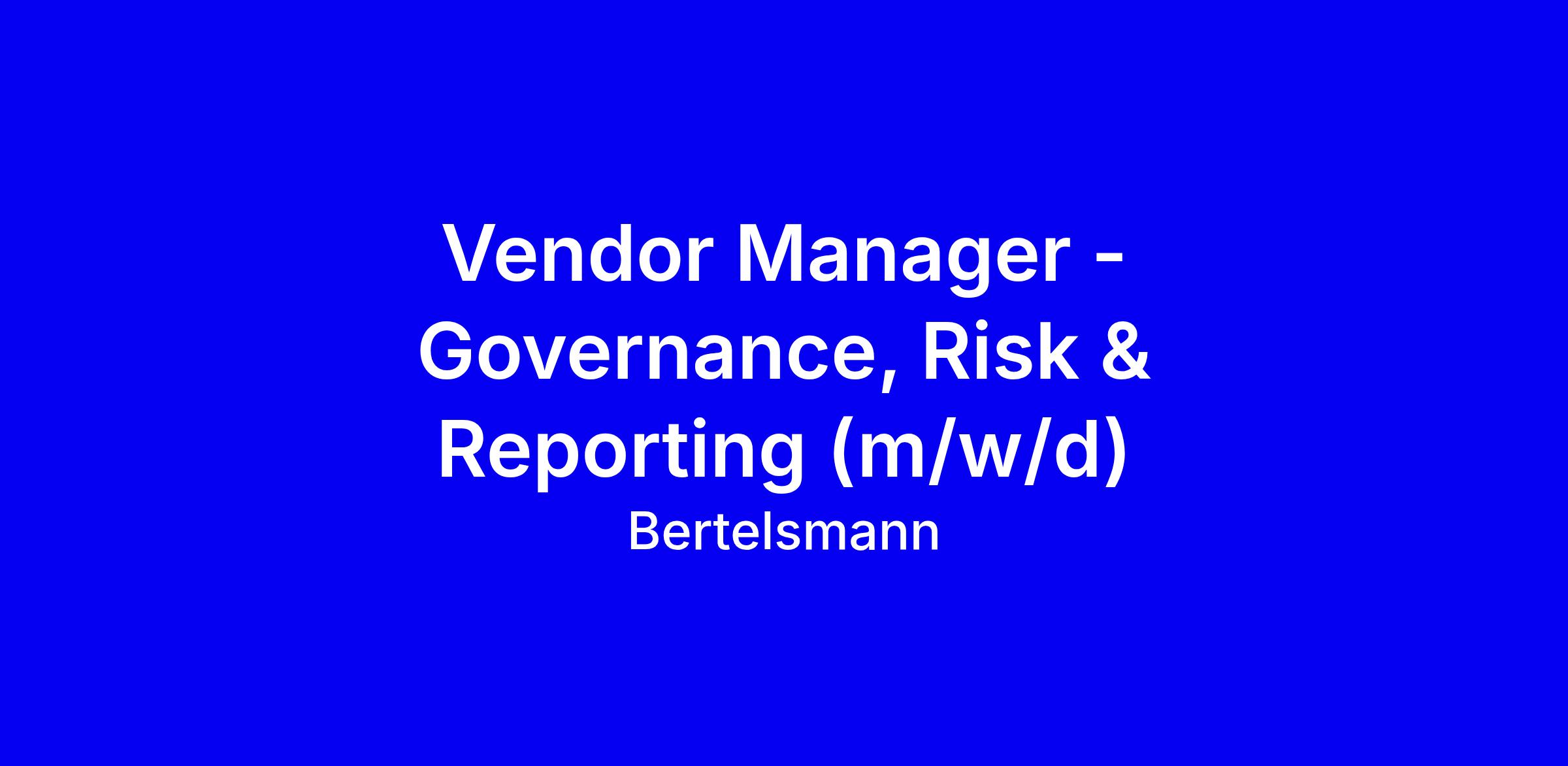 Vendor Manager - Governance, Risk & Reporting (m/w/d)
