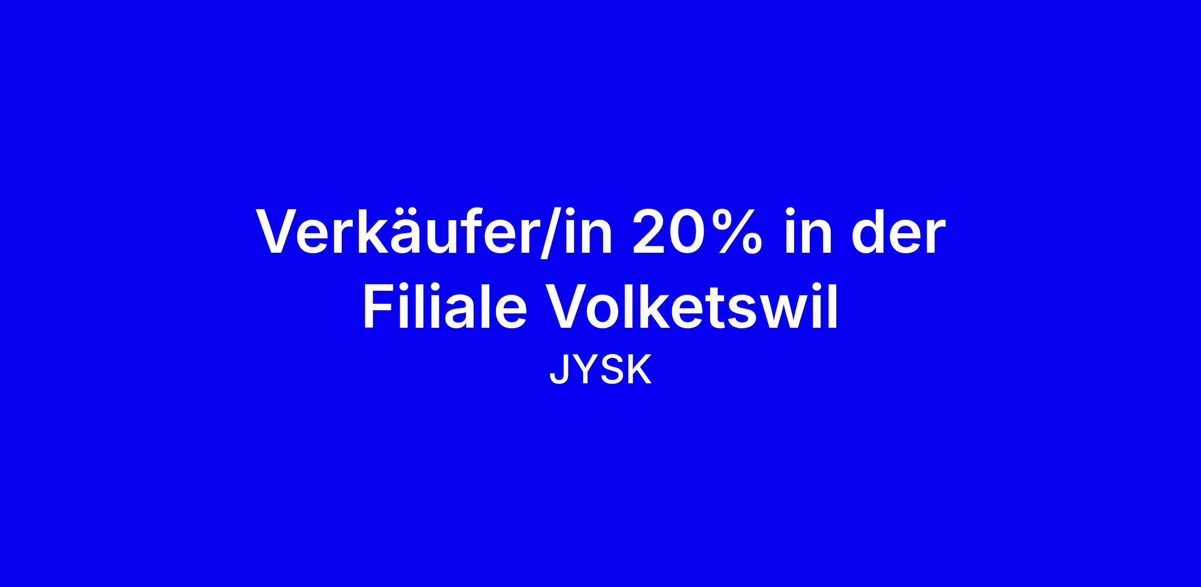Die Stelle Verkäufer/in 20% in der Filiale Volketswil bei JYSK richtet sich an kontaktfreudige Verkaufsprofis, die Top-Service liefern und eigenständig Bereiche wie Matratzen oder Möbel betreuen möchten. Du sorgst für einen ansprechenden Verkauf, hältst die Filiale sauber und bist an der Warenannahme und -einlagerung beteiligt, inklusive Wochenendbereitschaft. JYSK bietet dir Entwicklungsmöglichkeiten, Mentoring, interne Filialen-Wettbewerbe, Umsatzboni, 20% Mitarbeiterrabatt, erstklassige Pensionskassenleistungen, 5 Wochen Ferien (mit Steigerung nach Dienstjahren) und vielseitige Zusatzleistungen. Wichtig sind deine Teamfähigkeit, Hands-on-Mentalität, Flexibilität und Freude am Gespräch. Zeig in deiner Bewerbung, wie du Kunden begeisterst, übernimm Verantwortung und bringst dich in einem dynamischen Umfeld ein; bewirb dich noch heute über die JYSK-Karriereseite.