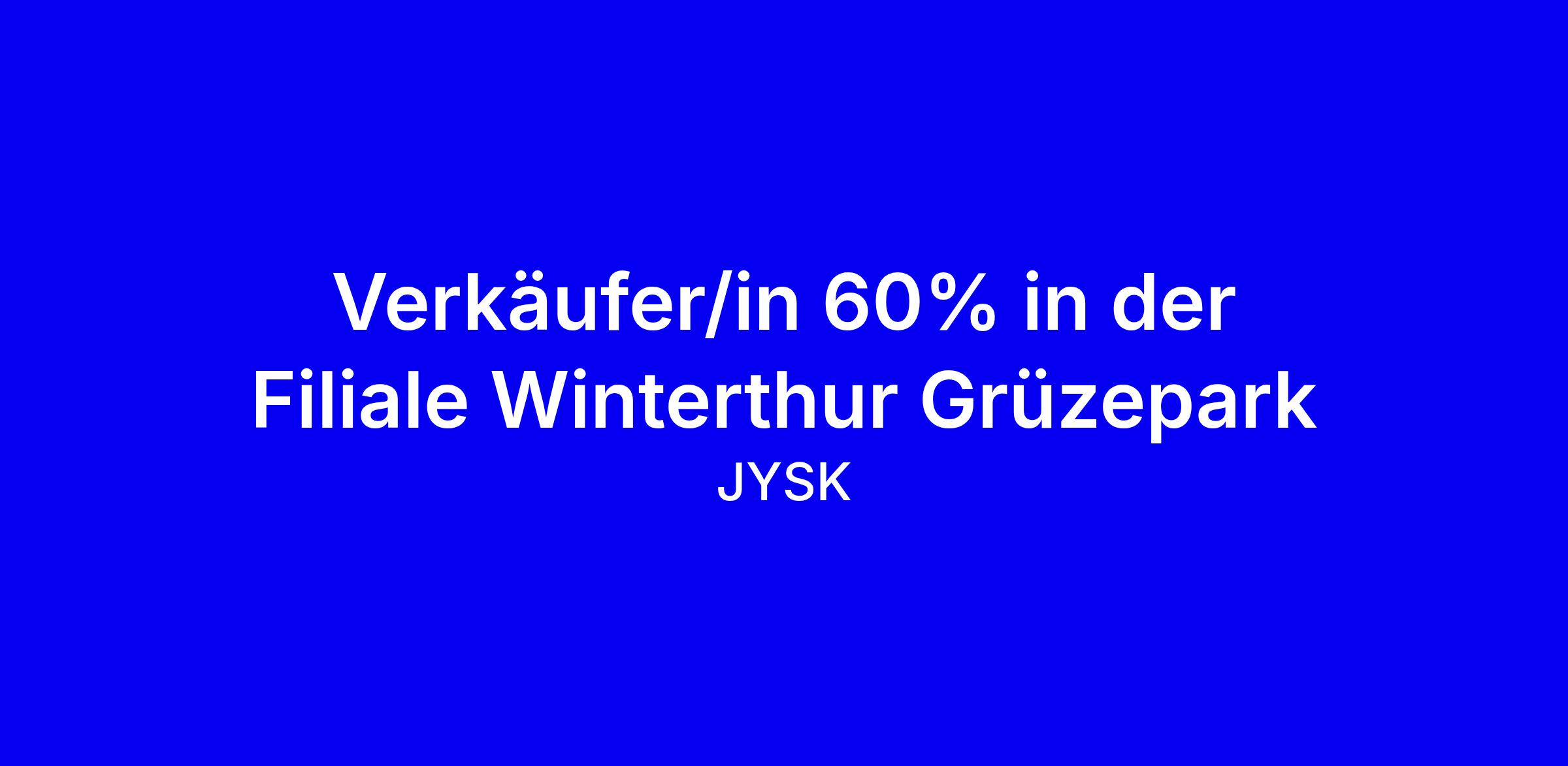 Es handelt sich um eine 60%-Stelle als Verkäufer/in in der JYSK-Filiale Winterthur Grüzepark mit Fokus auf erstklassigen Kundenservice, Warenannahme, Lagerung und Übernahme eines eigenen Bereichs wie Matratzen. Du arbeitest im Verkauf, sorgst für Sauberkeit und Produktplatzierung, unterstützt bei der Warenannahme und Lagerung und profitierst von Entwicklungsmöglichkeiten, Mentoring, Umsatzboni, 20% Mitarbeiterrabatt, top Pensionskassenleistungen, 5 Wochen Ferien und weiteren Benefits wie Unfallversicherung und Teamevents. Gesucht werden kontaktfreudige Teamplayer, die Initiativen ergreifen, flexibel sind, auch samstags arbeiten können, und Freude am dynamischen Umfeld haben. Tipp: Passe deine Bewerbung individuell an, betone Kundenerlebnisse und konkrete Erfolge, nenne Bereiche, die du verantworten willst, und verlinke dich über das Online-Karriereportal oder die Jobseite von JYSK, bewirb dich noch heute.