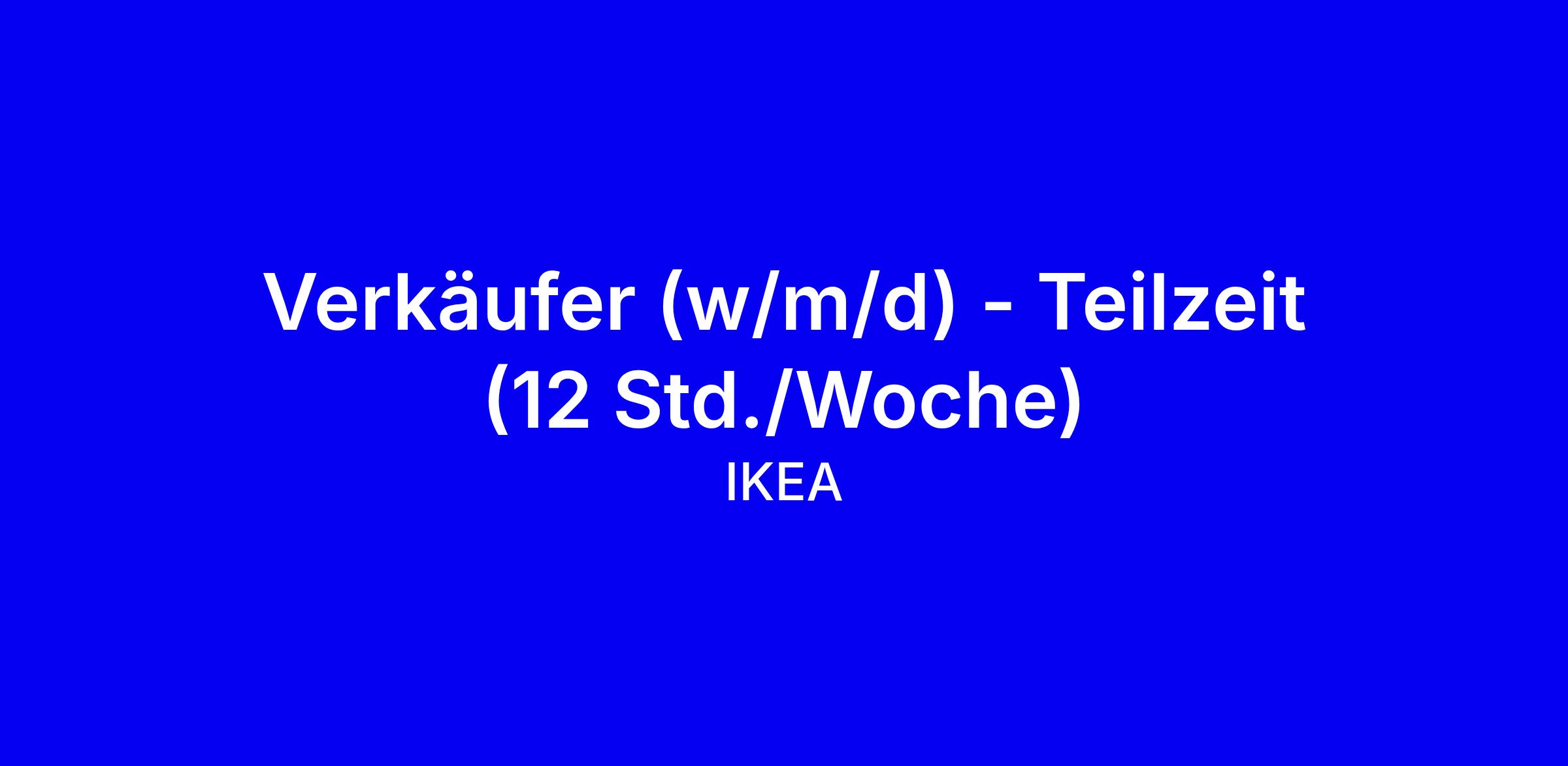 Diese Stelle sucht eine/n Verkäufer/in (w/m/d) in Teilzeit (12 Std./Woche) am Standort Kaarst, unbefristet, im Verkaufsbereich. IKEA setzt auf Vielfalt, Nachhaltigkeit und Kundennähe, mit der Vision vielen Menschen einen besseren Alltag zu schaffen. Du arbeitest direkt im Verkauf, unterstützt Kundinnen und Kunden bei der Produktauswahl, bist Teamplayer und nutzt Lernmöglichkeiten, um regelmäßig neue Produkte und Lösungen kennenzulernen. Wichtig sind Einsatzbereitschaft, Freude am Lernen, Spaß an der Arbeit und die Bereitschaft, dich in eine inklusive, kulturgetriebene Atmosphäre einzubringen. Bewerbung bis 09.03.2026. Tipps: Hebe Kundenerfahrung, Teamfähigkeit, Flexibilität und Liebe zum Einrichten hervor, verknüpfe Beispiele mit IKEA Werten.