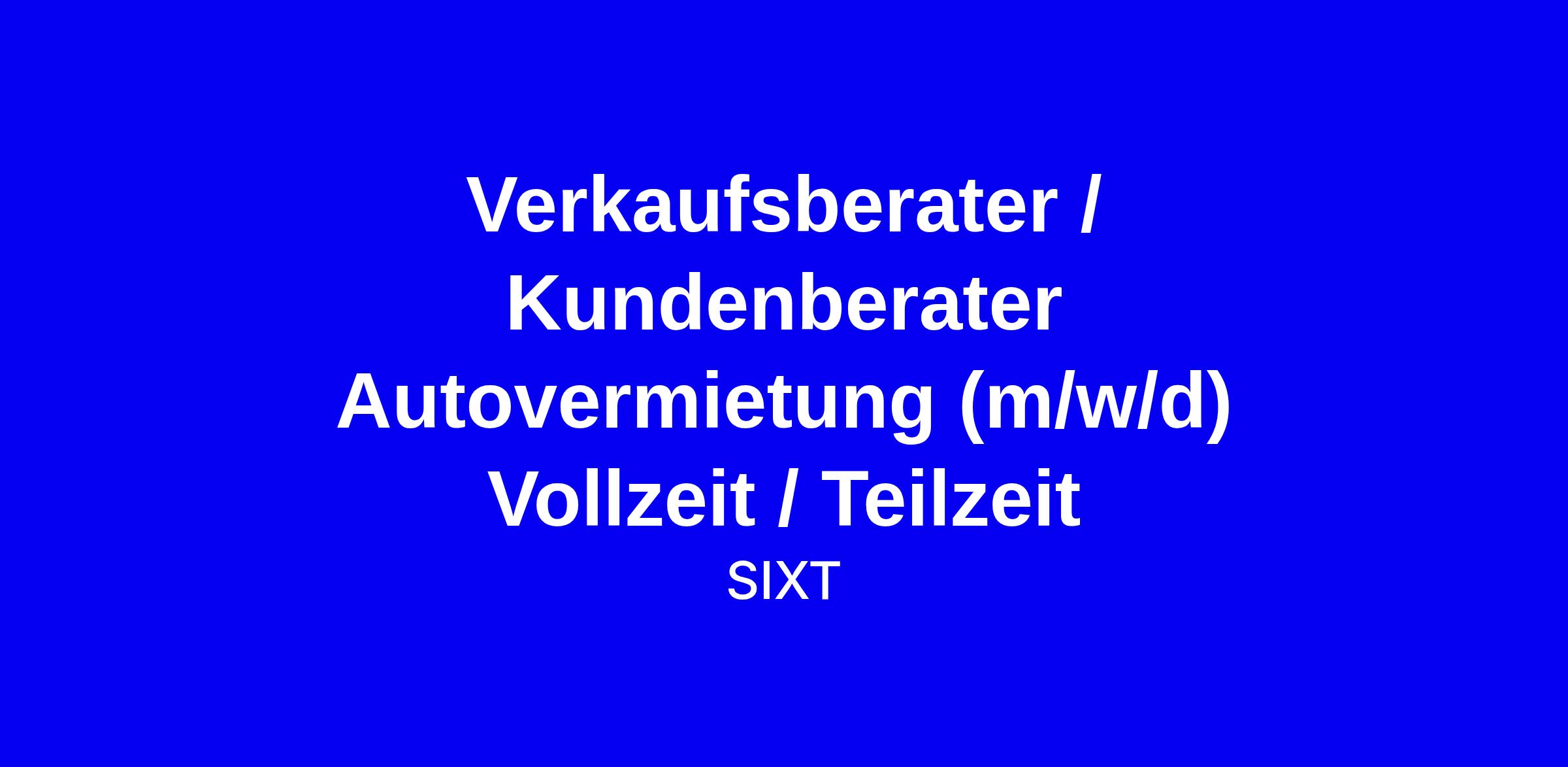 Du bist kontaktfreudig und hast Spaß am Verkauf? Dann komm zu SIXT! Hier sorgst Du für zufriedene Kunden, behältst unsere Autos im Blick und übernimmst spannende Aufgaben in der Filiale. Keine Sorge - wir bringen Dir alles Wichtige über Autos bei! Dich erwarten flexible Arbeitszeiten, gute Aufstiegschancen und ein durchschnittliches Gehalt von 3.026 € brutto im Monat (bei Vollzeit) plus Bonus. Mit unserem Bonussystem ist Dein Gehalt nach oben offen: Je besser Du performst, desto mehr verdienst Du. Ohne Limit.