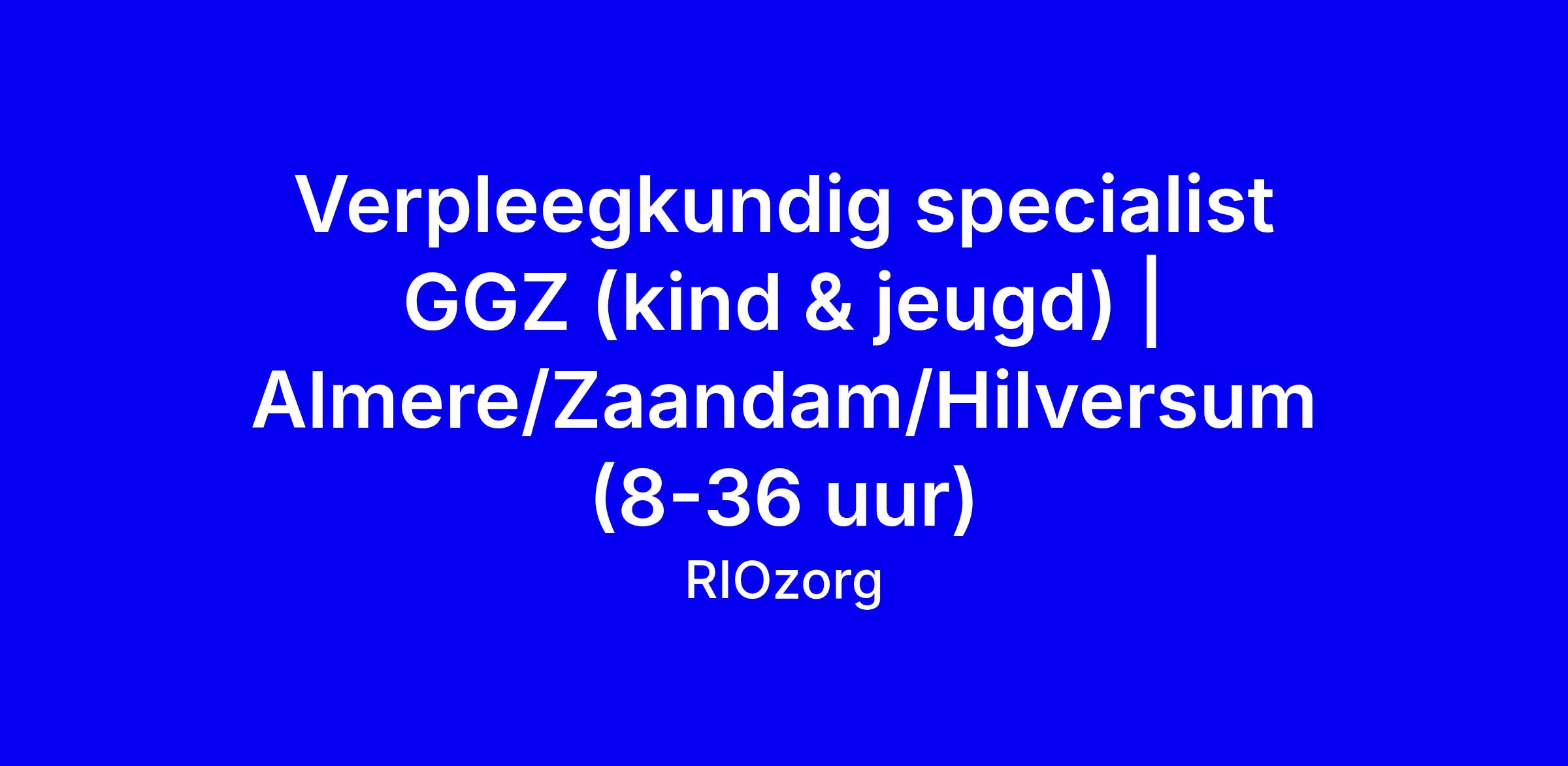RIOzorg zoekt een Verpleegkundig Specialist GGZ voor Kind en Jeugd die met aandacht en vakkennis bijdraagt aan kinderen van 4 tot 18 jaar in een ambulante, informele cultuur zonder weekenddiensten. Je werkt in de vakgroep Medici en levert medische zorg in MDO’s, behandelt cliënten en coördineert zorg met het behandelteam en huisarts, met consult bij een kinder- en jeugdpsychiater of kinderarts. Vereisten: HBO verpleegkunde met de master Verpleegkundig Specialist GGZ en ervaring met ADHD/ASS en somatische problematiek. Wij bieden CAO GGZ FWG 65, vaste aanstelling, flexibele uren en standplaatsen Almere Zaandam Hilversum, reiskosten, opleidingsbudget, laptop en telefoon. Sollicitatietips: benadruk autonomie en teamgeest, relevante expertise en voeg een VOG toe.